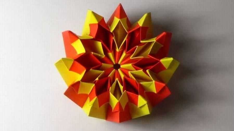 И вот поделка превращается в замечательном цветную игрушку-головоломку, имеющую название fireworks origamy. Схема очень проста.