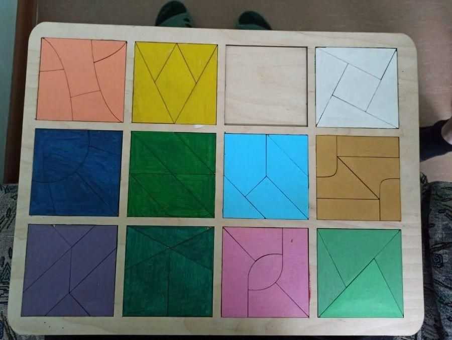 Это своеобразный тетрис из картона, вырезав, раскрасив и вставив детальки в картонную рамку, можно развлекаться практически до бесконечности. Головоломки для этого же придуманы?