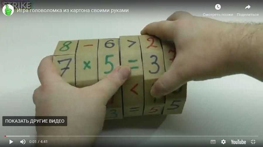 Посмотрите на самый простой вариант головоломки, которая становится все сложнее и сложнее с каждым элементом. Это точно сможет занять ребенка не на один вечер! Разовьет логическое мышление.
