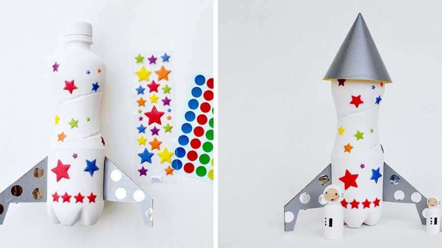 Основным предназначением поделки для малышей является ее запуск в эффектный полет. Ракета развалится на мелкие кусочки, поэтому, слишком усердствовать с деталями не стоит. Действуйте по инструкции: