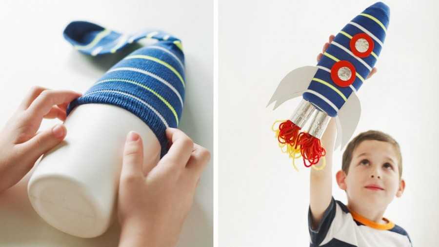 Чтобы сделать своими руками космическую ракету, взмывающую вверх, нужны: