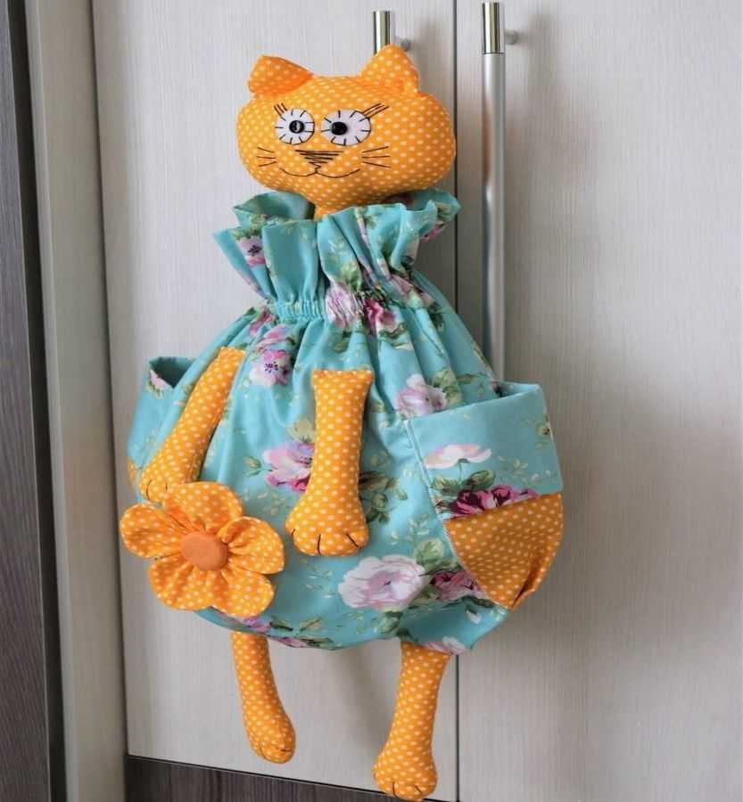 Пакетница-кошка может также выглядеть вот в таком исполнении. Стоит учитывать каждую деталь, так как это придает изюминку каждому изделию.
