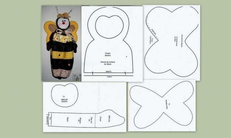 Есть также идея изготовить пчелку. Пример выкройки показан ниже. Каждую выкройку можно дорабатывать до необходимого внешнего вида.