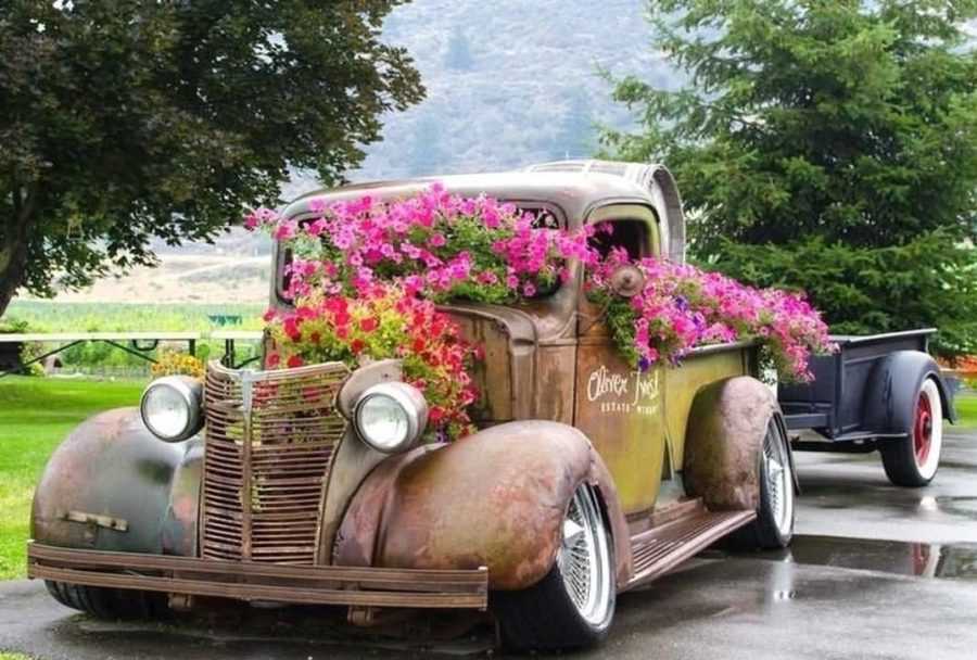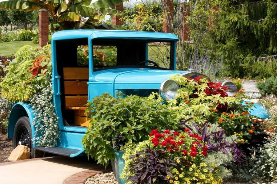 Отживший свой век железный конь, когда-то исправно возивший на дачу семью и все, что необходимо для работы в саду, еще может пригодиться! Даже если он лишился колес и изрядно проржавел. Водрузите остов в центре участка, на видном месте, подкрасьте его аэрозольной краской желаемого цвета и устройте в нем клумбу, высадив пышно цветущие растения.