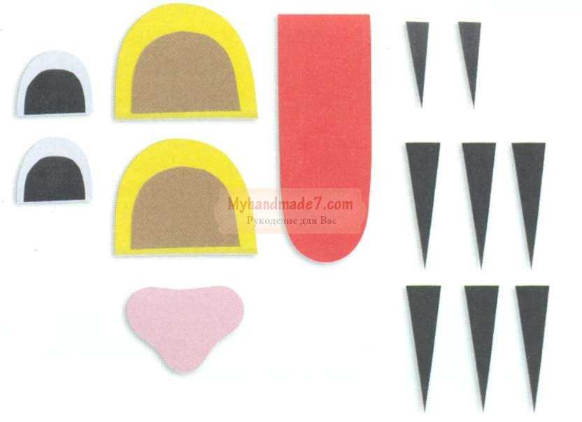 - Из материала вырезать детали мордочки и приклеить их к голове игрушки.