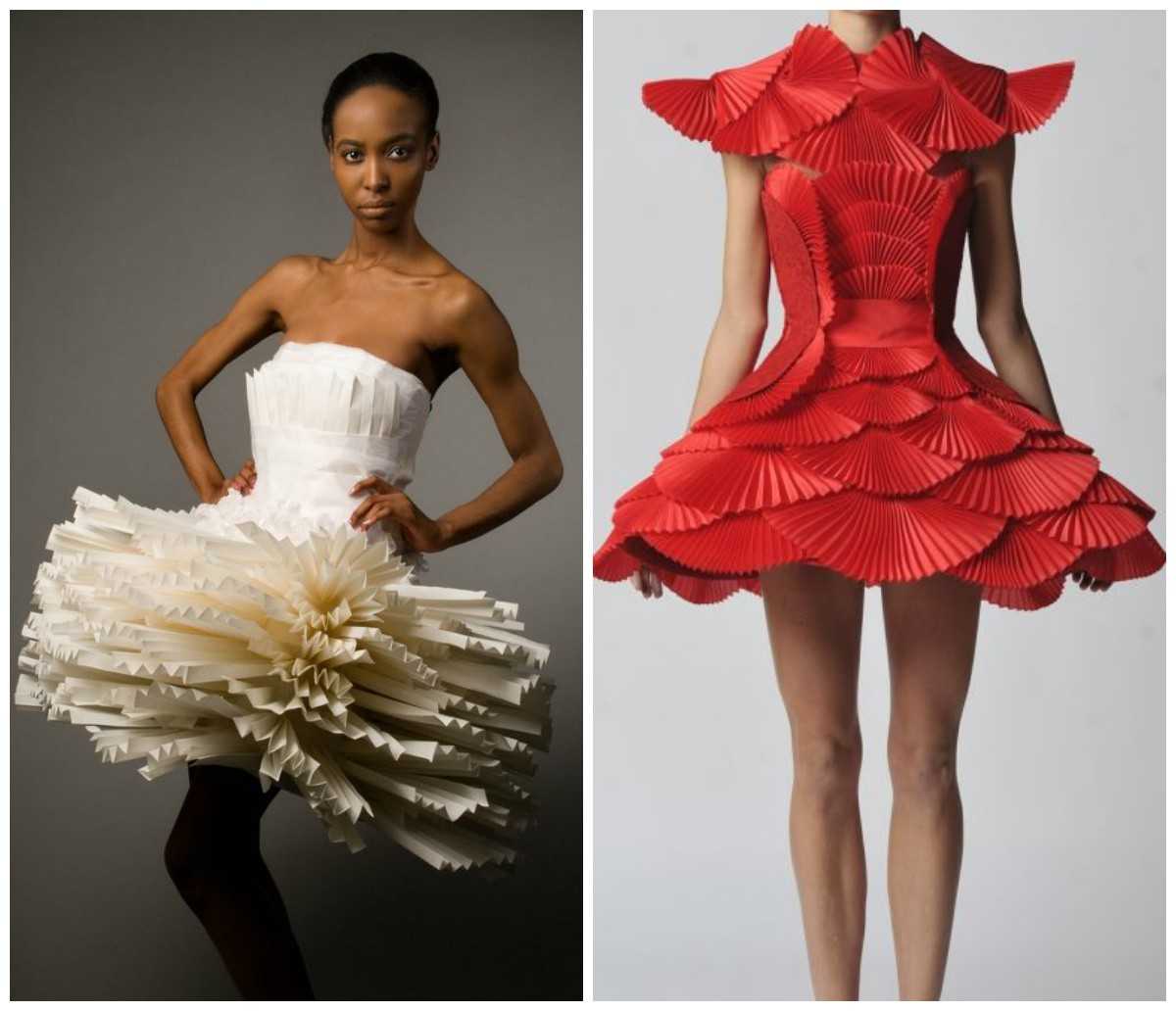 Но скульптурами бумажное искусство не заканчивается. В индустрии моды этот материал используют при создании одежды и аксессуаров!