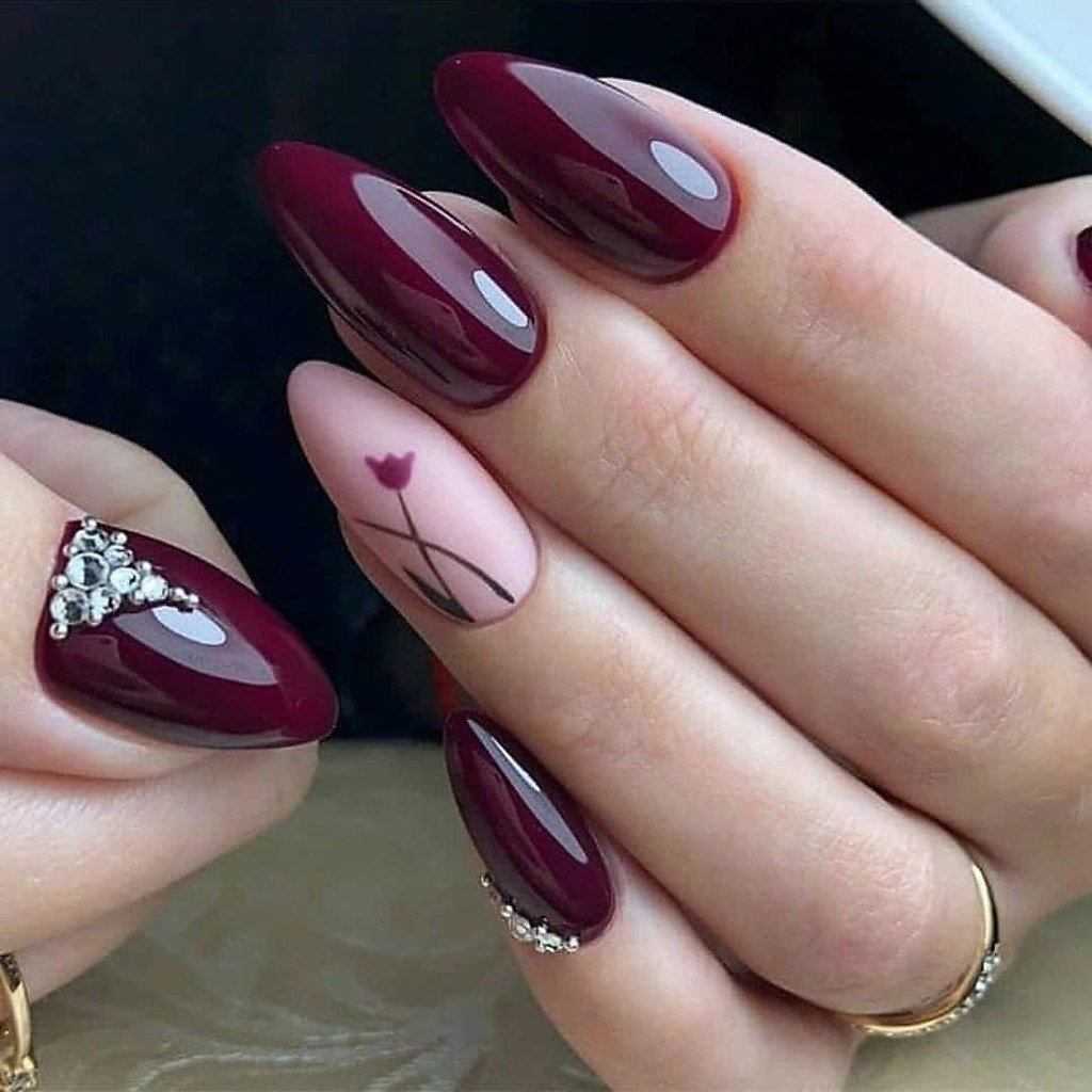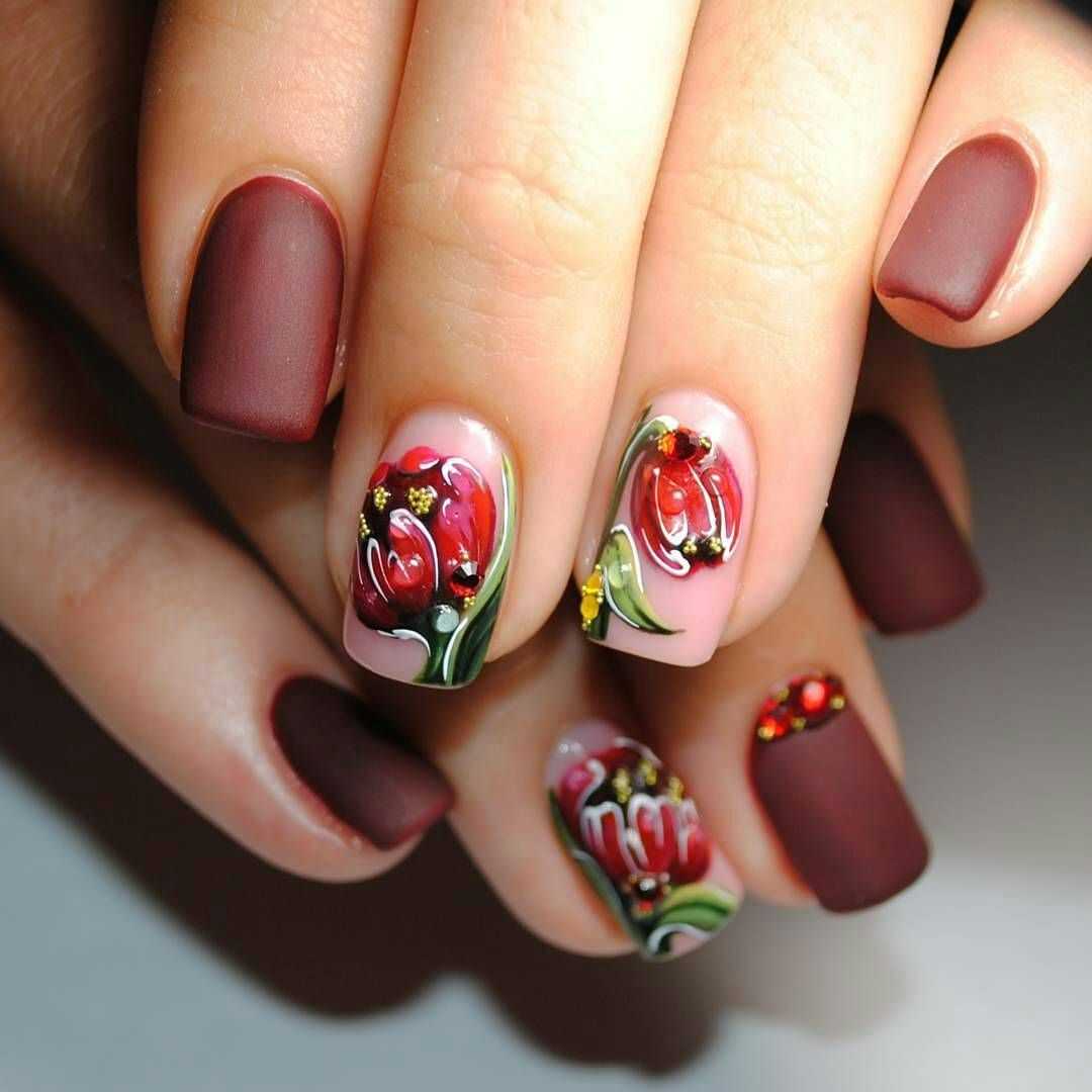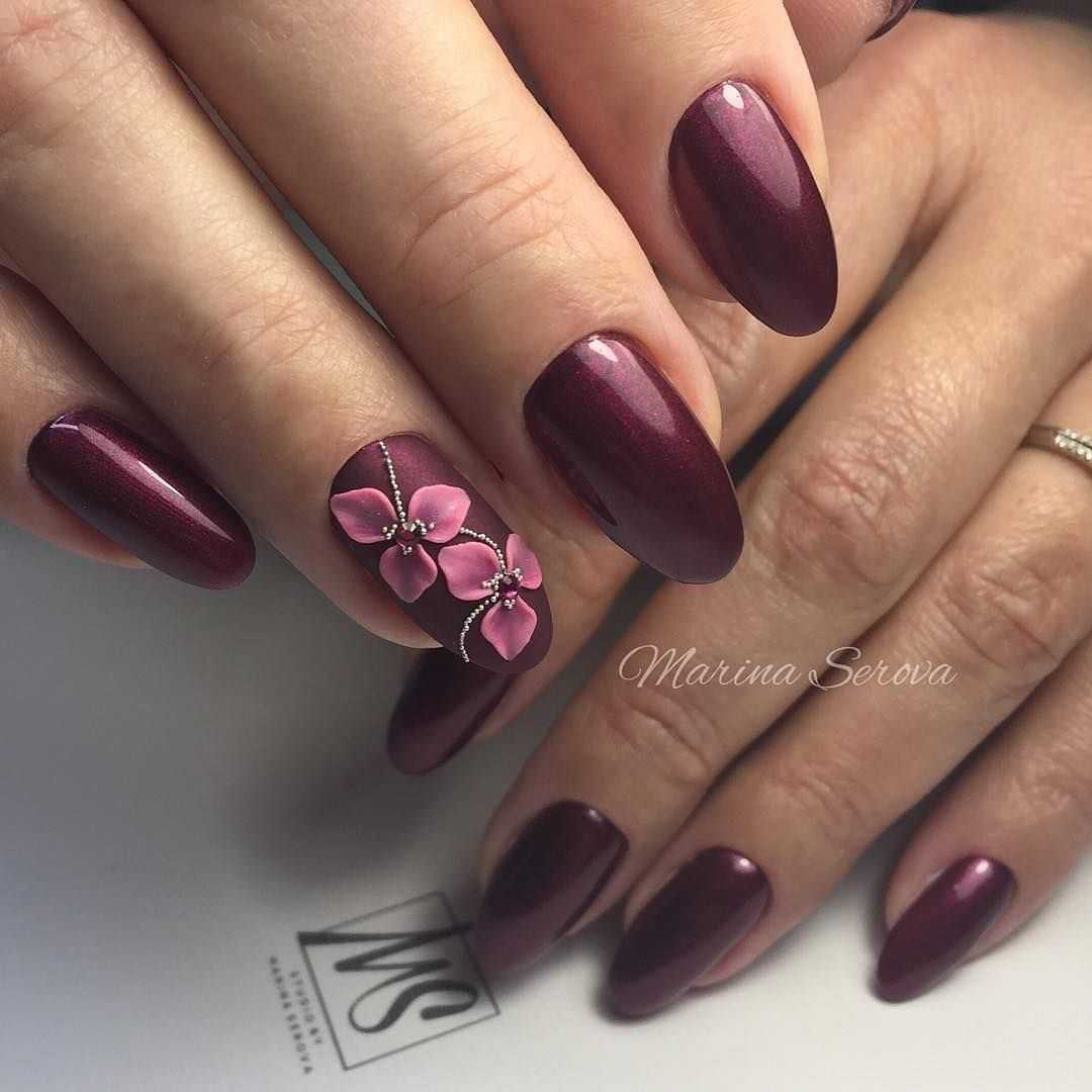 Какие цветы использовать для бордового маникюра?