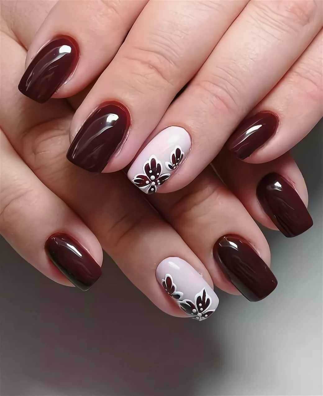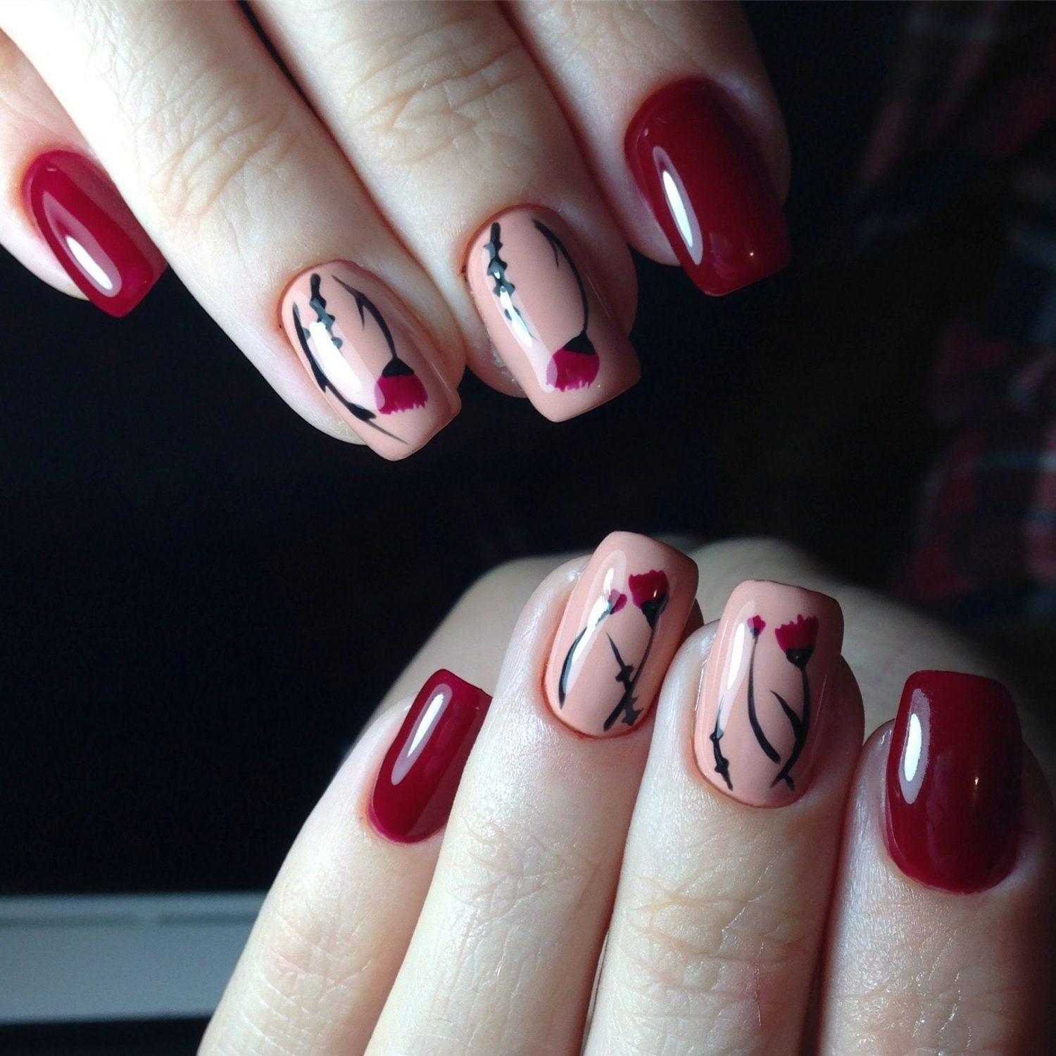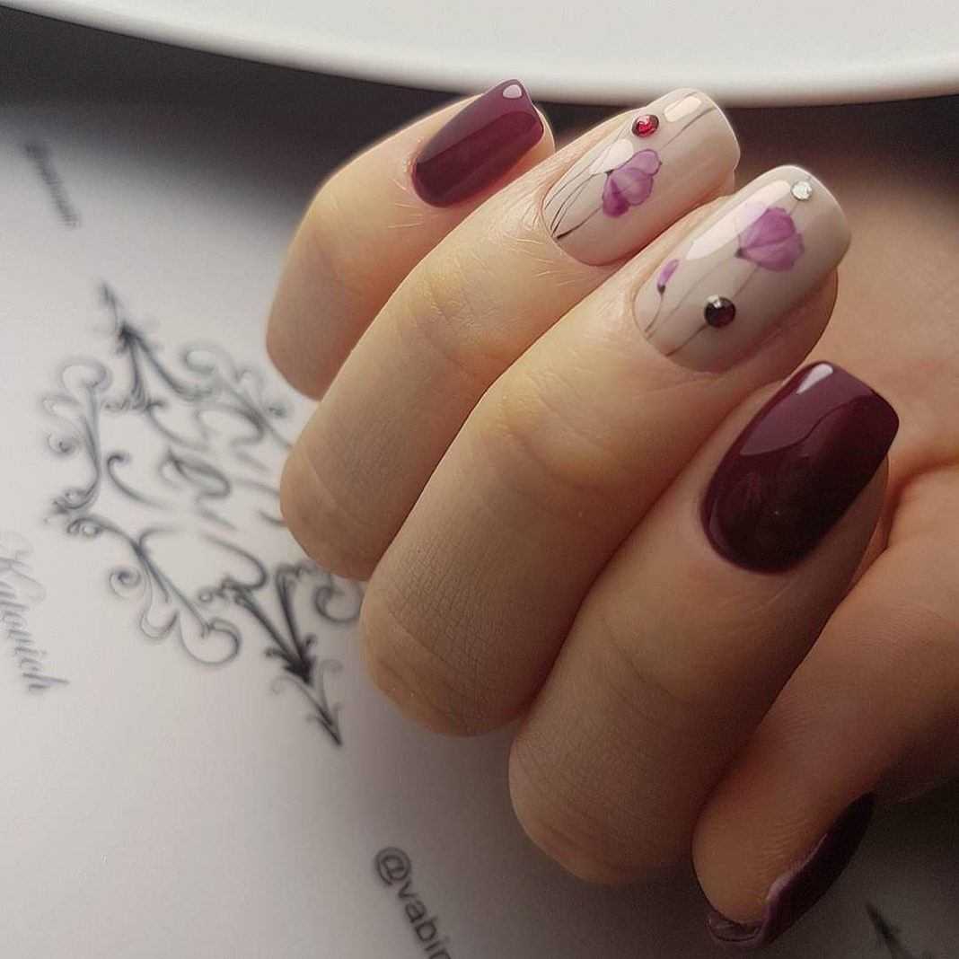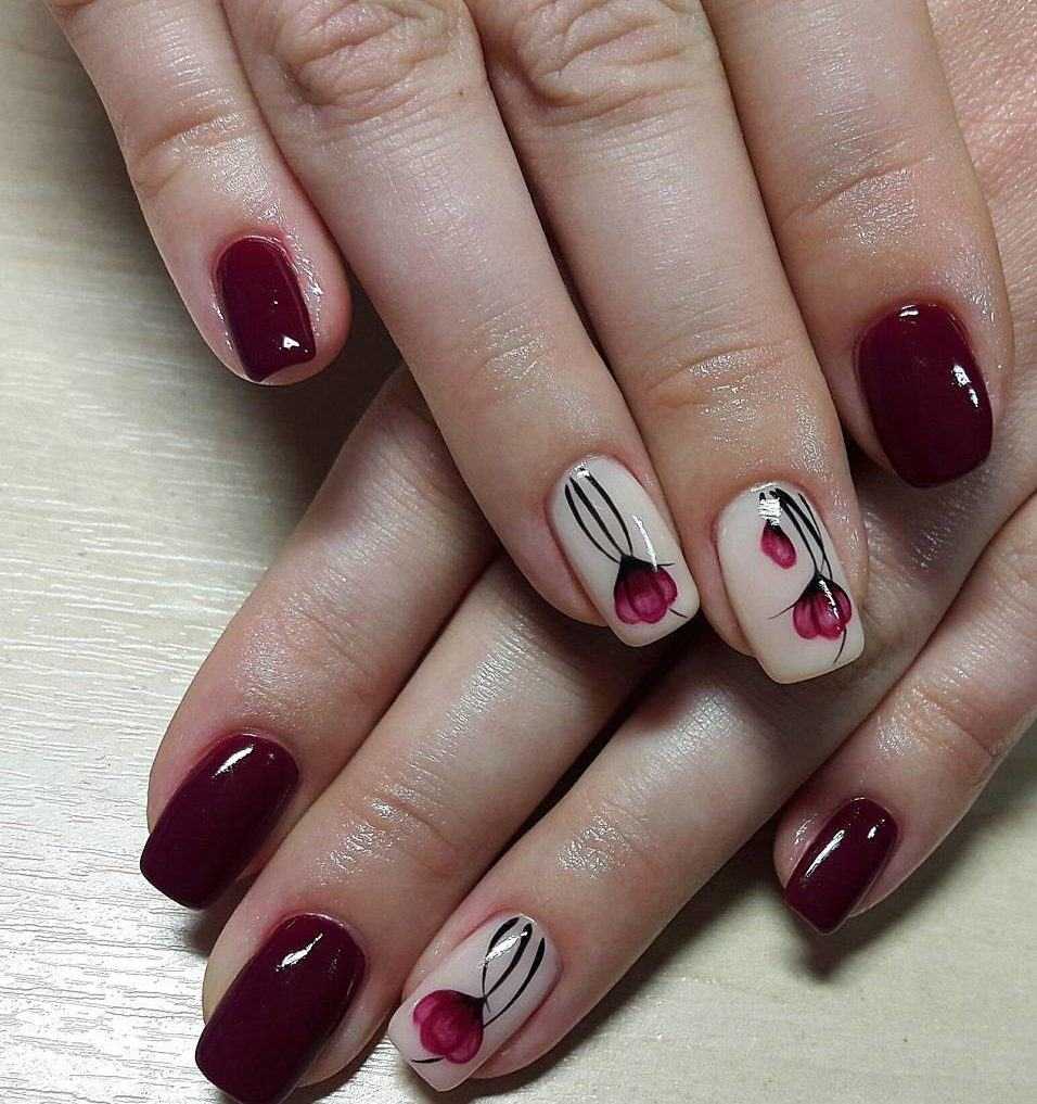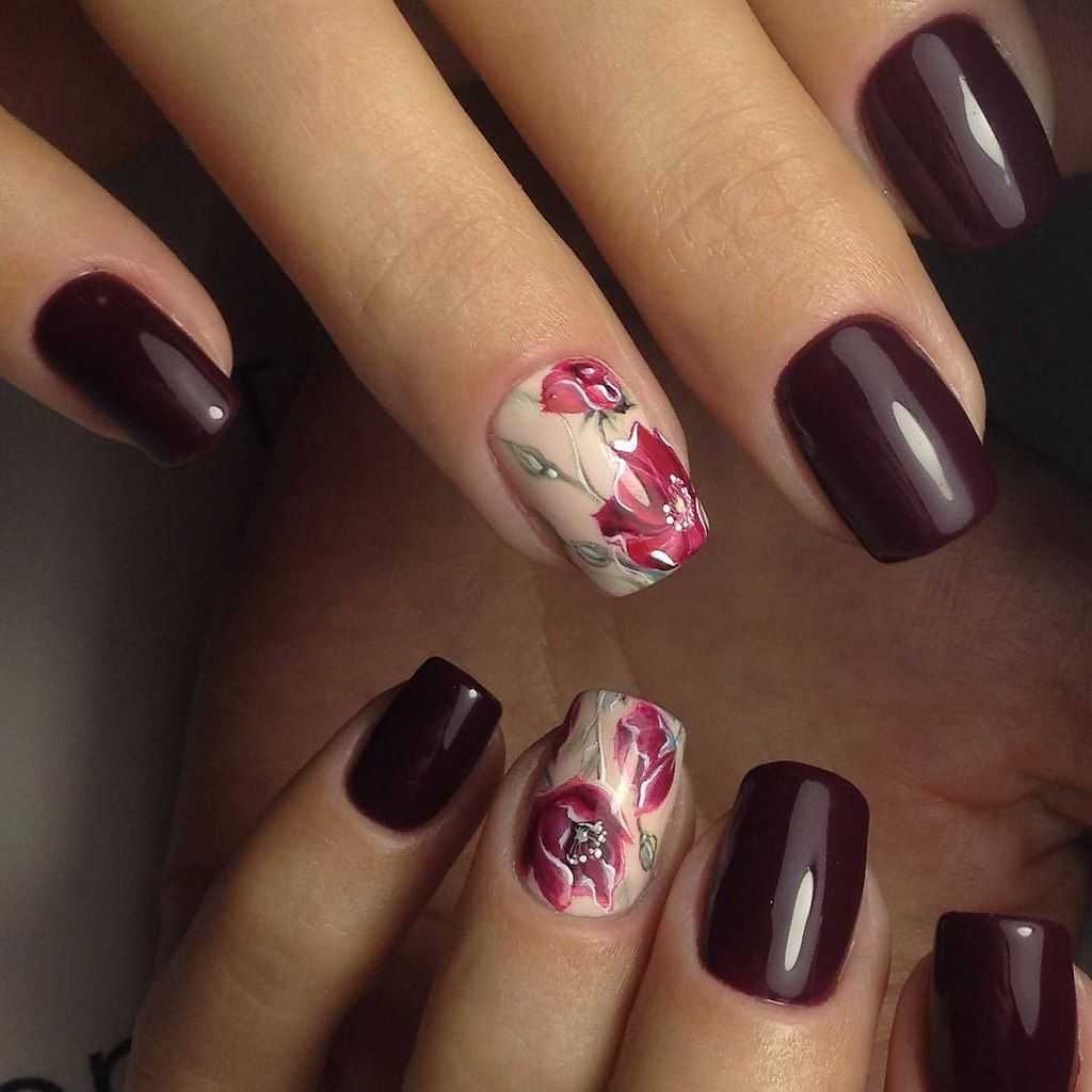 Бордовый маникюр с цветами: актуальные тренды и тенденции