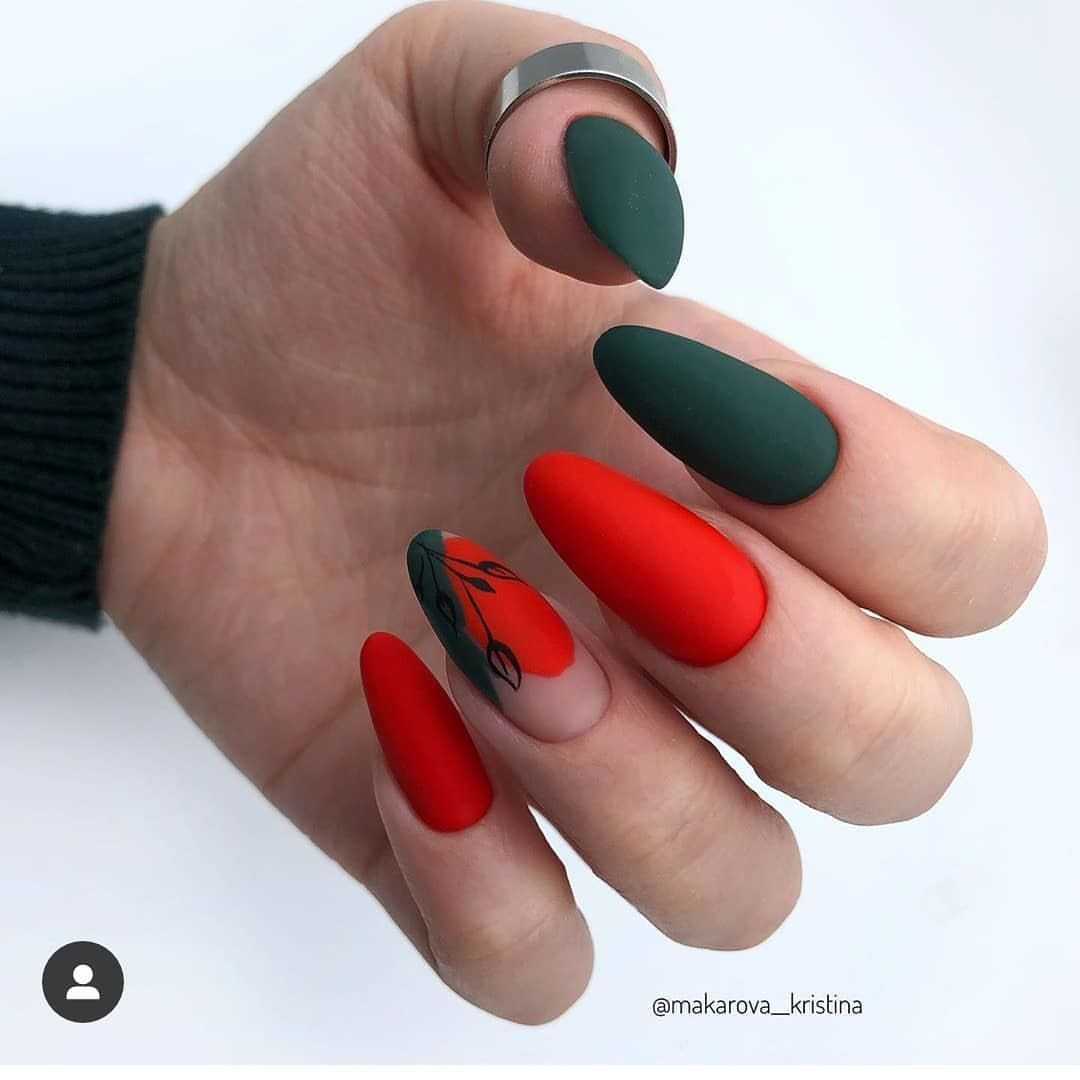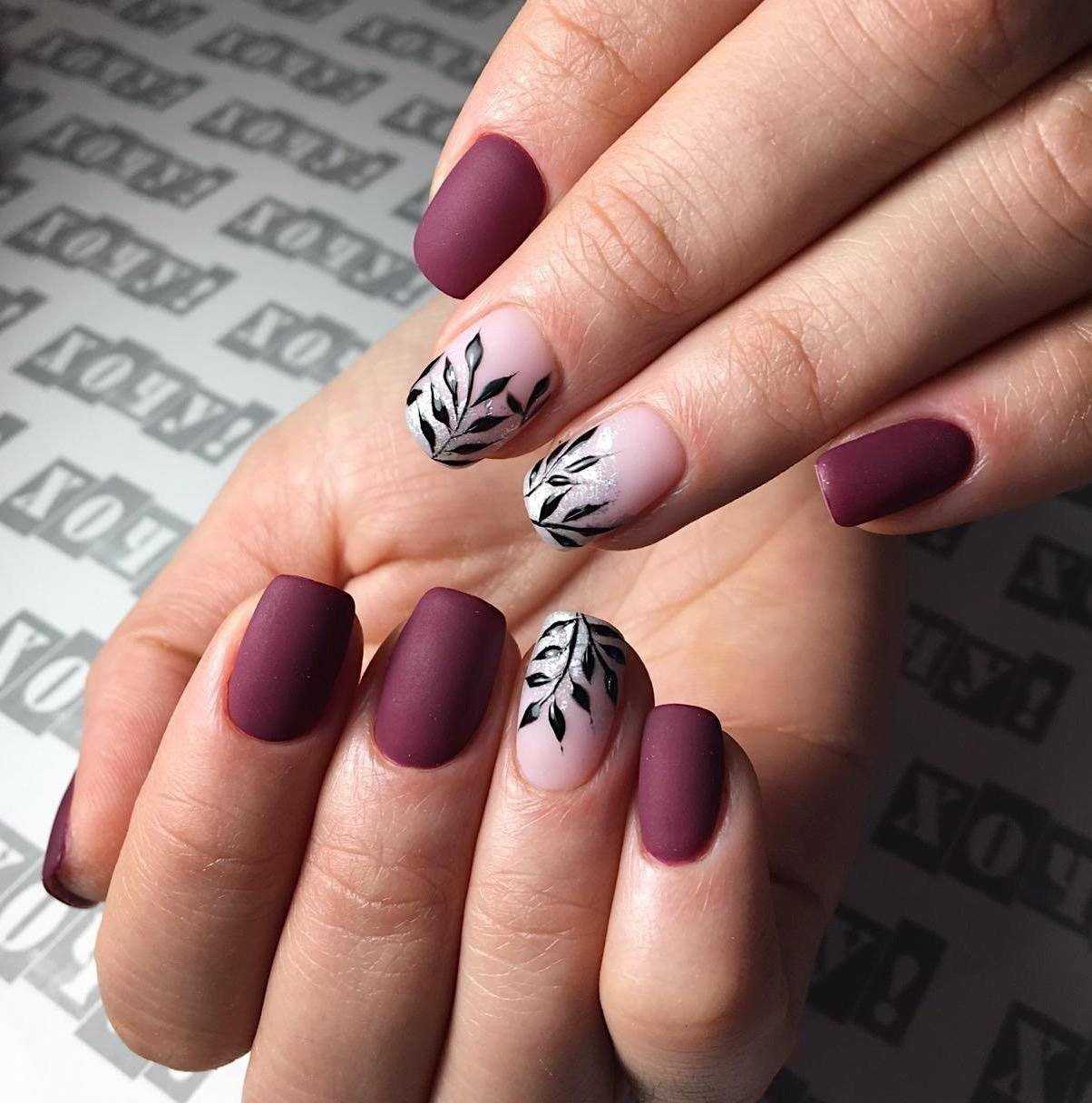 - матовый маникюр – темные насыщенные оттенки шикарно выглядят в матовой текстуре. В тренде однотонное окрашивание, френч, омбре.