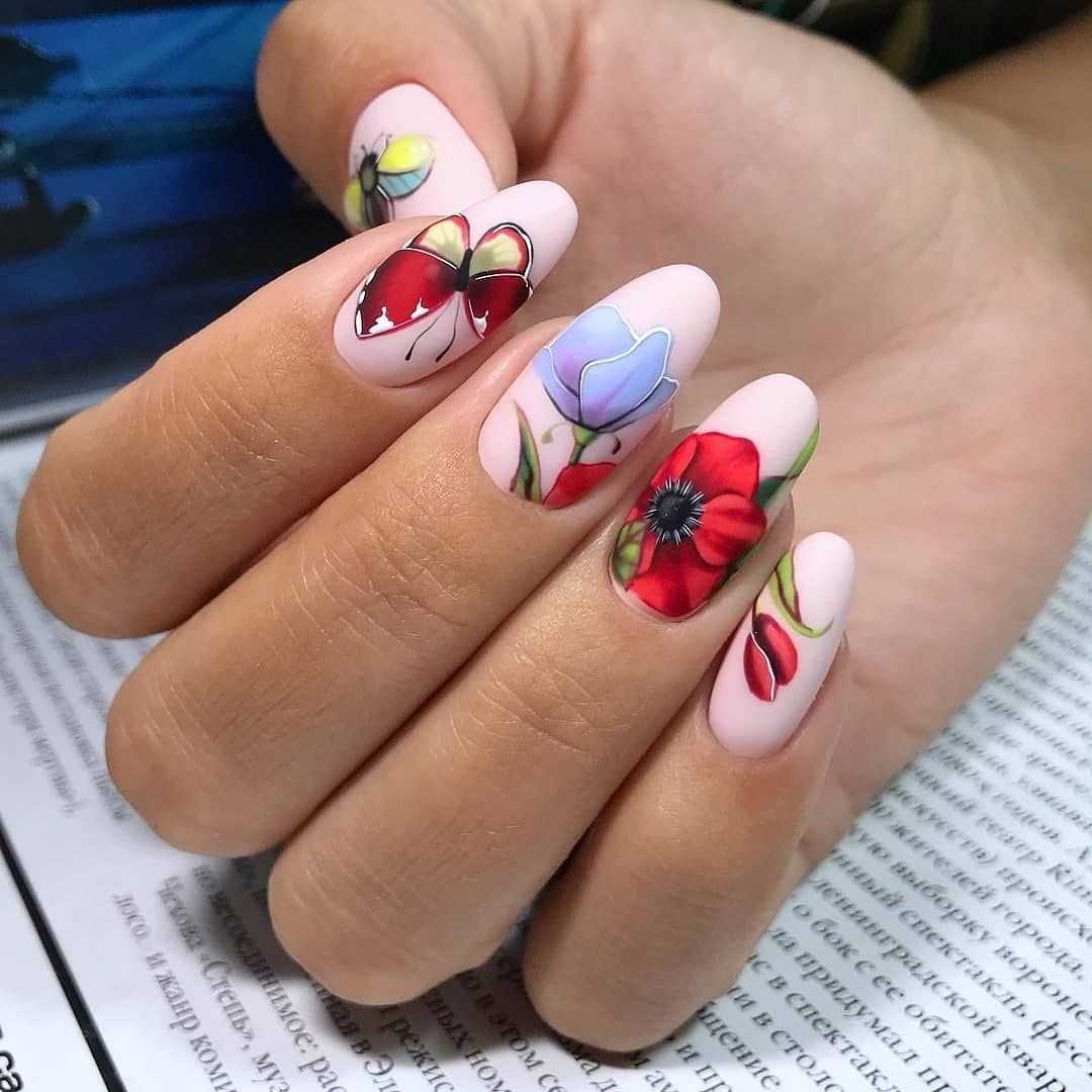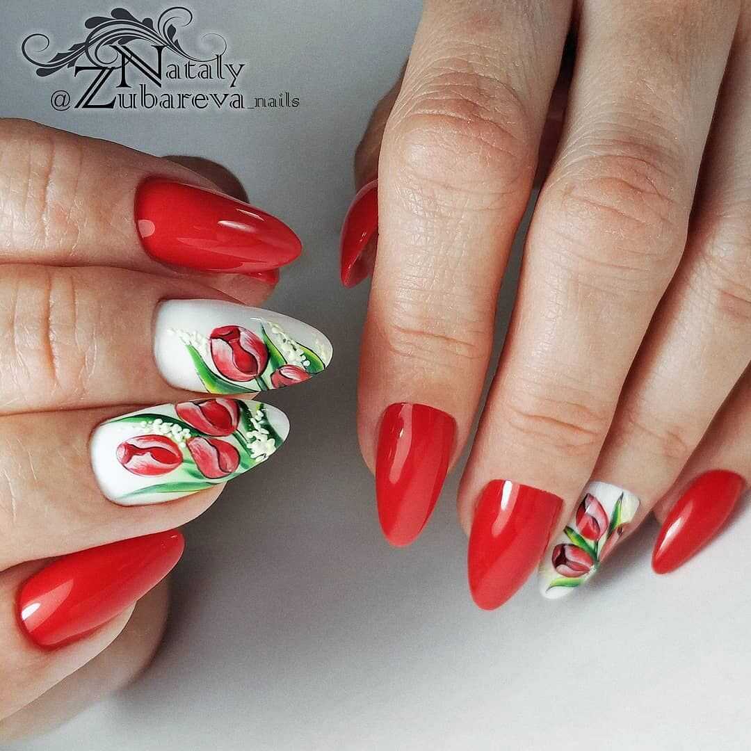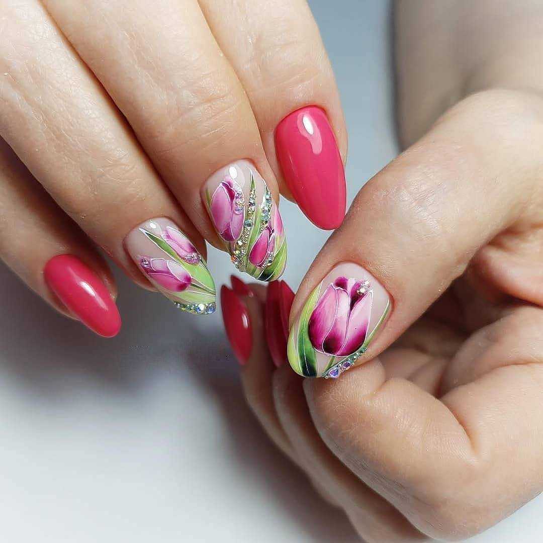 Второй по популярности цветок – это тюльпаны. Они смотрятся на ногтях очень нежно и женственно