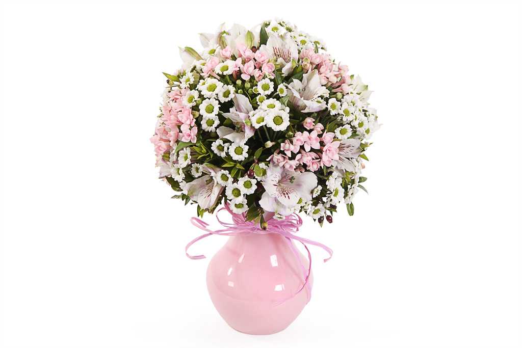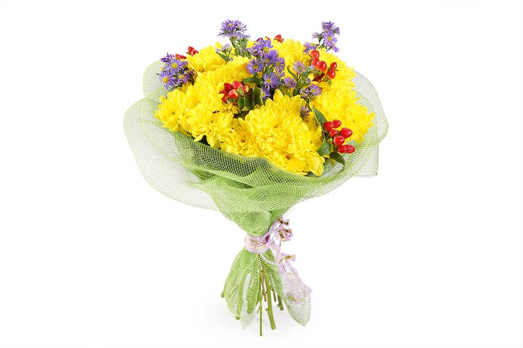 Букет из белых хризантем и альстрёмерий подчёркивает высокие нравственные качества того, кому адресован. Жёлтые цветы дарят, когда хотят пожелать долголетия, благополучия и процветания в делах, причём как женщинам, так и мужчинам.