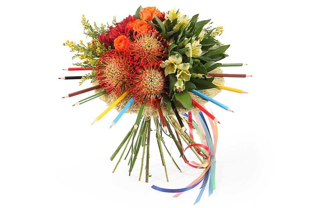 В букете цветы располагают свободно, выбирая растения разной высоты.