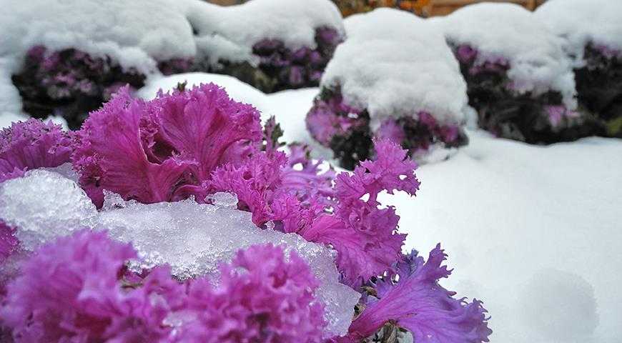 Почему с началом морозов декоративная капуста становится только красивее? Все просто: за зеленую окраску отвечает, как известно, хлорофилл. Но под воздействием холода он разрушается, и на смену приходят яркие желтые, красные и сиреневые краски.