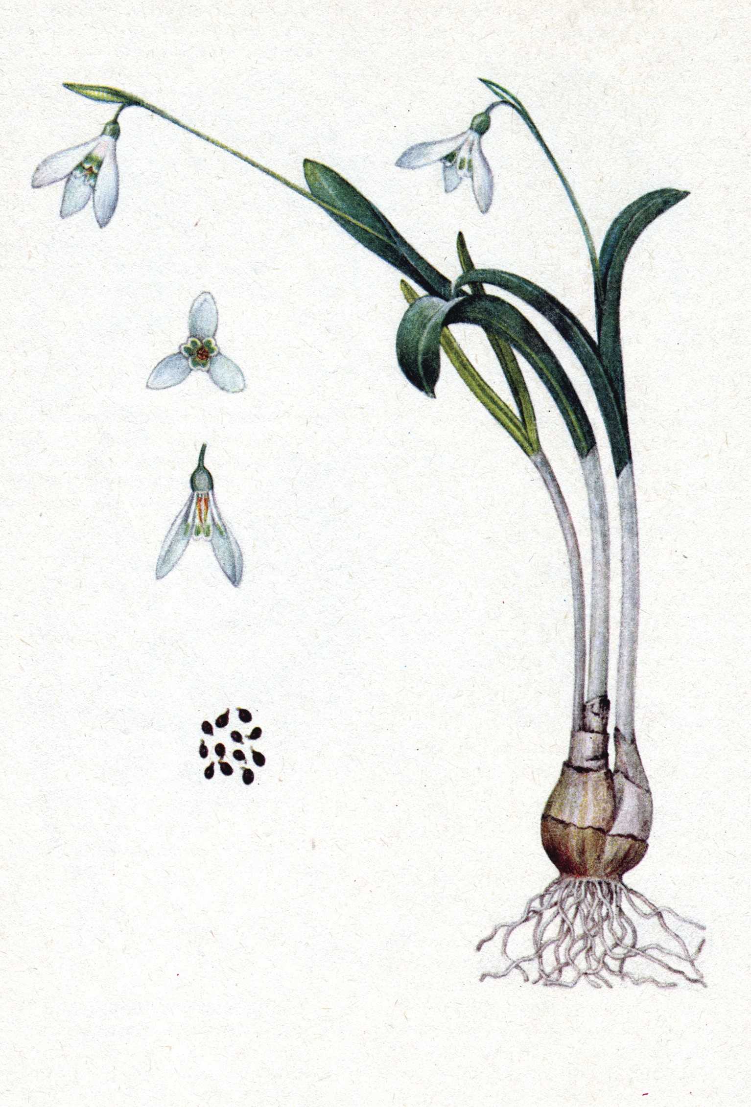 Подснежник – многолетнее растение, семейства луковичных. Срок вегетации напрямую зависит от широты и климата его обитания. Первые цветы могут появиться как в феврале, так и в апреле. Луковичка подснежника размером не более 3 см, состоит из прошлогоднего сегмента и новой луковички. И з нее впоследствии вырастет новое растение. Из луковицы выходят широкие листья, их, как правило, два или три. Одновременно появляются бутоны, которые после смены холода на тепло выпускают небольшое соцветие. Окрас цветков кавказского вида подснежников может быть как белым, так и с ярко-зелеными пятнами. Цветонос цилиндрической формы, немного сплюснутый по краям. Голова цветка всегда смотрит вниз. Размножение происходит семенами и вегетативным способом. Семена, выпавшие из коробочки, разносят муравьи.Опыление происходит усилиями летающих насекомых.