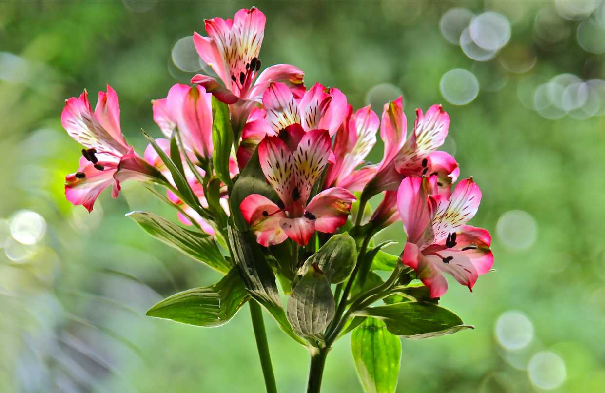 Розовая альстромерия, как на фото, прекрасно смотрится на клумбе, не менее эффектна в срезке. Маленькие лилии флористы используют в цветочных композициях.