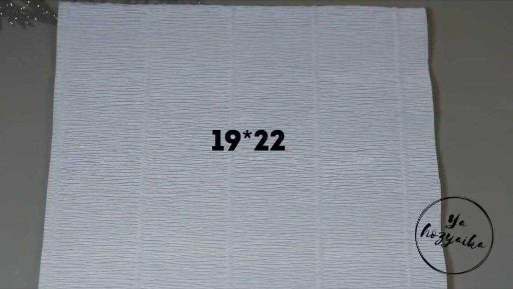 Для того, чтобы украсить бутылку нам нужна гофрированная бумага. Из белой гофрированной бумаги вырезаем прямоугольник 19/22 см. Это будет чехол, его мы оденем на бутылку.