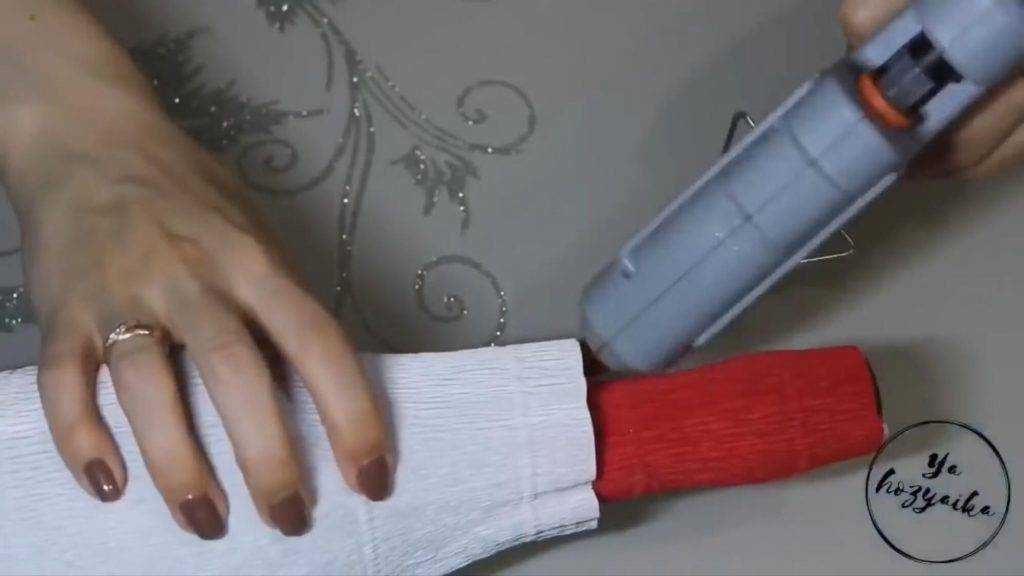 - Гофрированная бумага белая и красная.