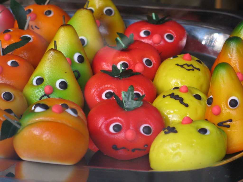 Легко выполнить фигурки в виде фруктов или овощей различных размеров. Они могут быть самостоятельным угощением либо послужить дополнением для другого десерта.