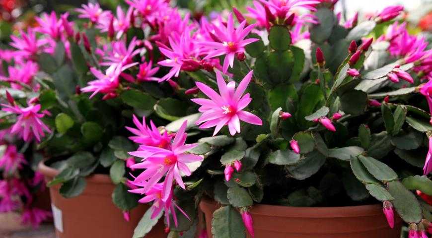 Шлюмбергеру, издавна известную у нас как «декабрист», в Европе чаще именуют «рождественским кактусом». У нас ее можно было увидеть в цветочных магазинах под именем «зигокактуса» или «эпифиллюма». Эта тропиканка бразильского происхождения неизменно радует хозяев цветением во время празднования и католического, и христианского Рождества и Нового года. Во времена наших бабушек преобладали экземпляры с красными или розовыми цветами, в наши дни, благодаря селекционным работам, их окраска приобрела разнообразие. Встречаются весьма впечатляющие варианты.