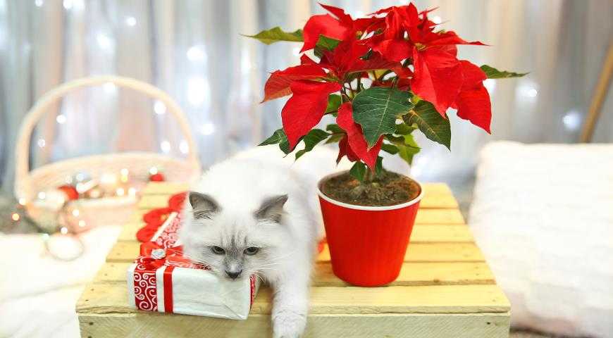 Сок пуансеттии токсичен, поэтому держите цветок подальше от домашних животных