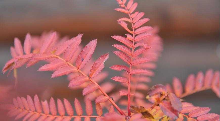 рябины смешанной удлиненные, состоящие из 13-17 «пальчиков», к осени приобретают очаровательный багряный цвет. Ягоды