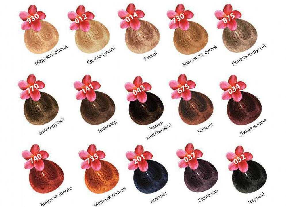 - Благородные русые: «Светло-русый» 012, «Русый 014», «Золотисто-русый», «Пепельно-русый» 875, тон «Коньяк» под номером 675.