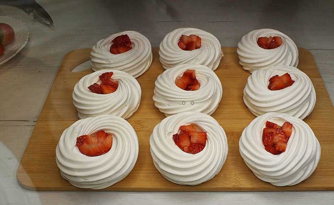 Потрясающие легкие пирожные Павлова готовы и ждут дегустации. Наслаждение в каждом укусе гарантировано.