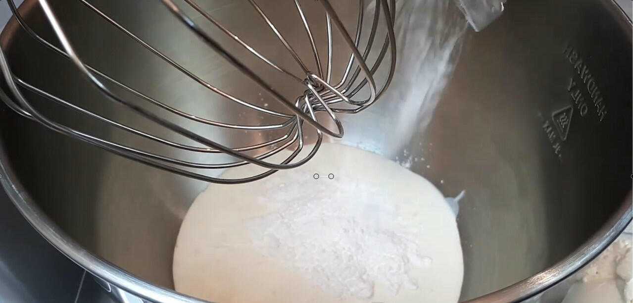 - В получившуюся смесь добавляем растопленное, но негорячее сливочное масло, а также муку. Вымешиваем тесто. Чашу затягиваем пленкой и оставляем в тепле на 1-1,5 часа.
