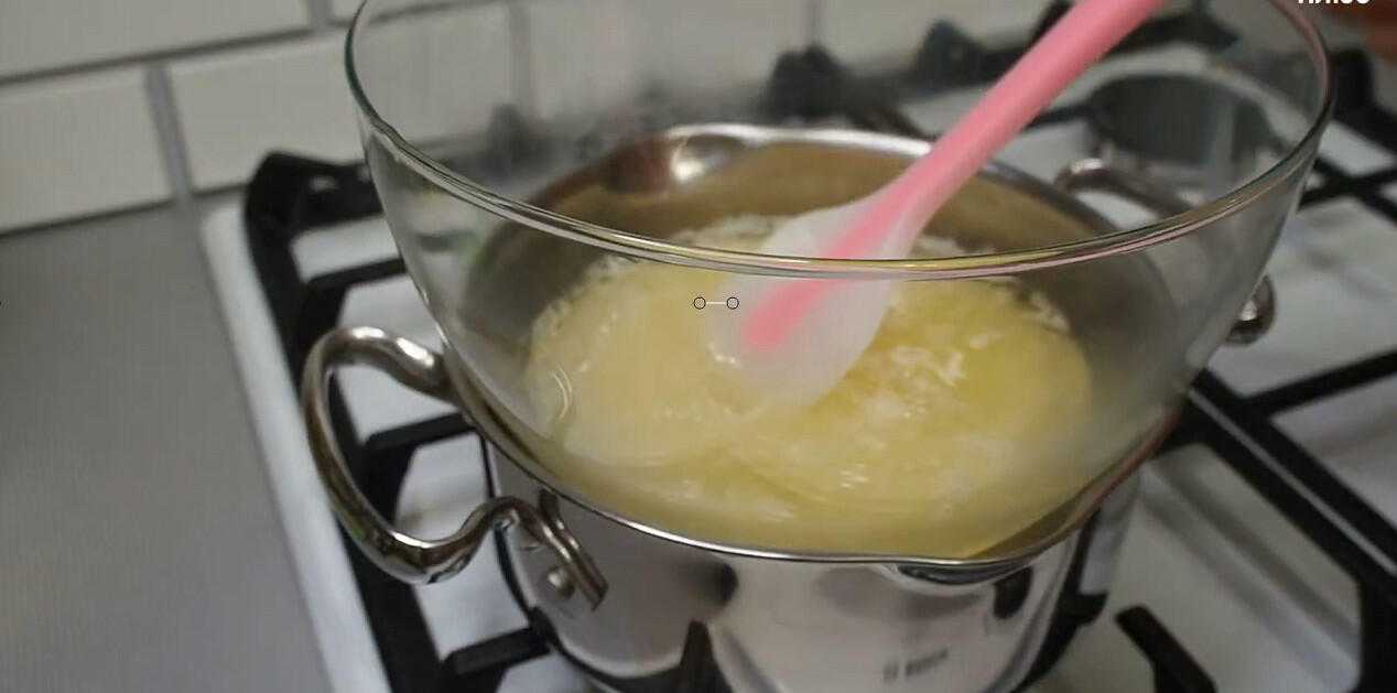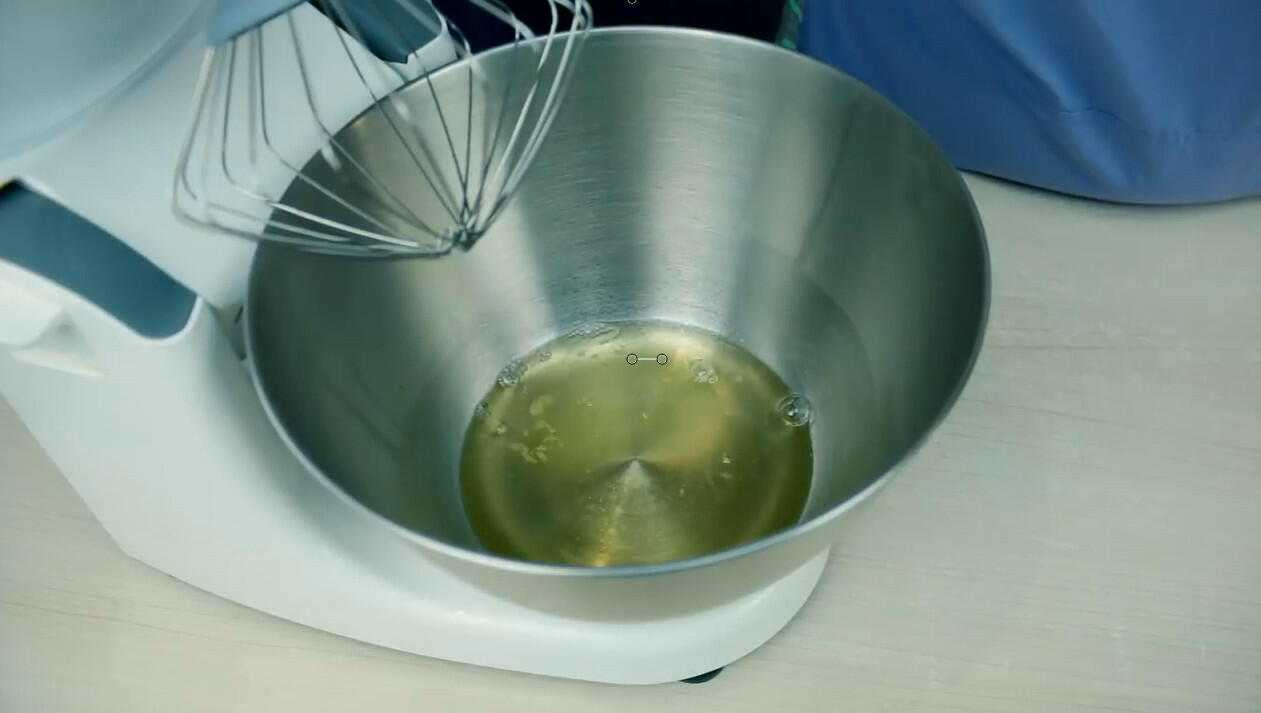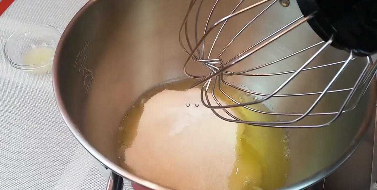 Белки подогреваем на водяной бане, добавляем сахар и мешаем пока он не растворится. Температуру поддерживаем около 60С.