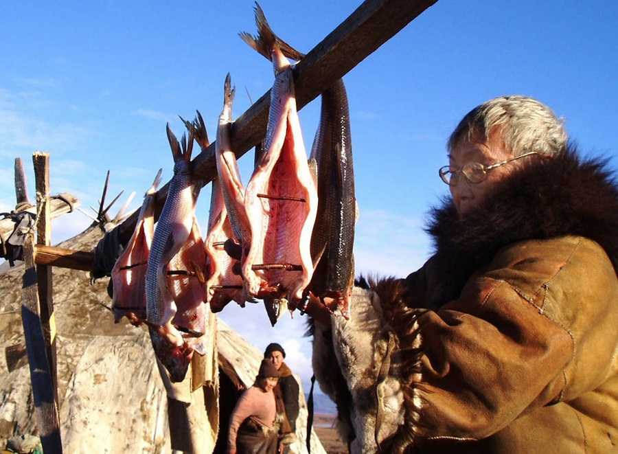 Принесенная рыболовом или охотником добыча не становится пищей только для семьи добытчика. Ее выкладывают на улице на большом столе, и все желающие могут взять себе кусок. Молодцы!