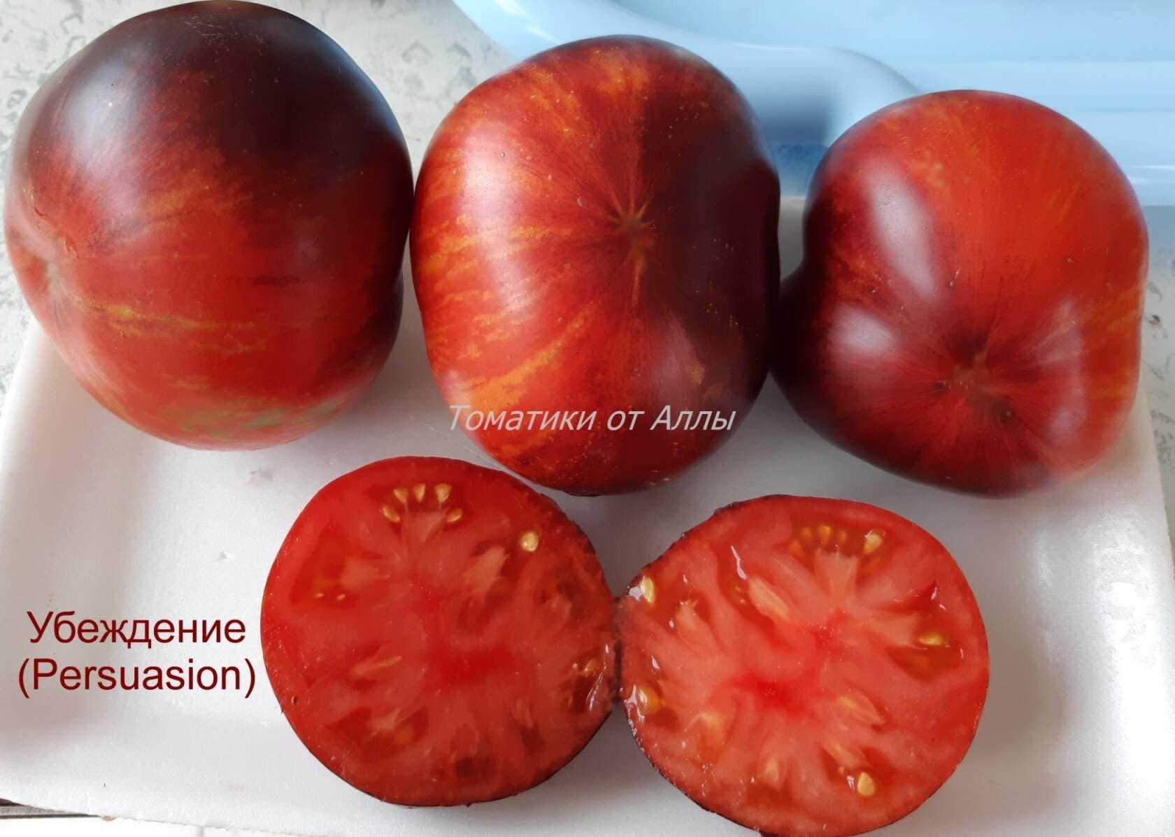 Оригинальное название сорта — Persuasion. Новинка селекции 2015 года от Бреда Гейтса. Среднерослый, среднеспелый сорт томата с плодами оригинальной расцветки. Можно выращивать как в теплице, так и в открытом грунте с обязательной подвязкой к опоре. Растение индетерминантного типа, высотой в конце …