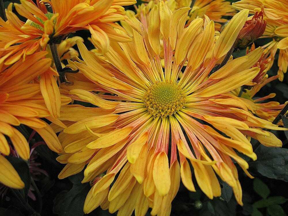 Гранд Оранж (Grand Orange) – раннецветущая оранжевая хризантема с зеленым центром. Часто используется во флористике.