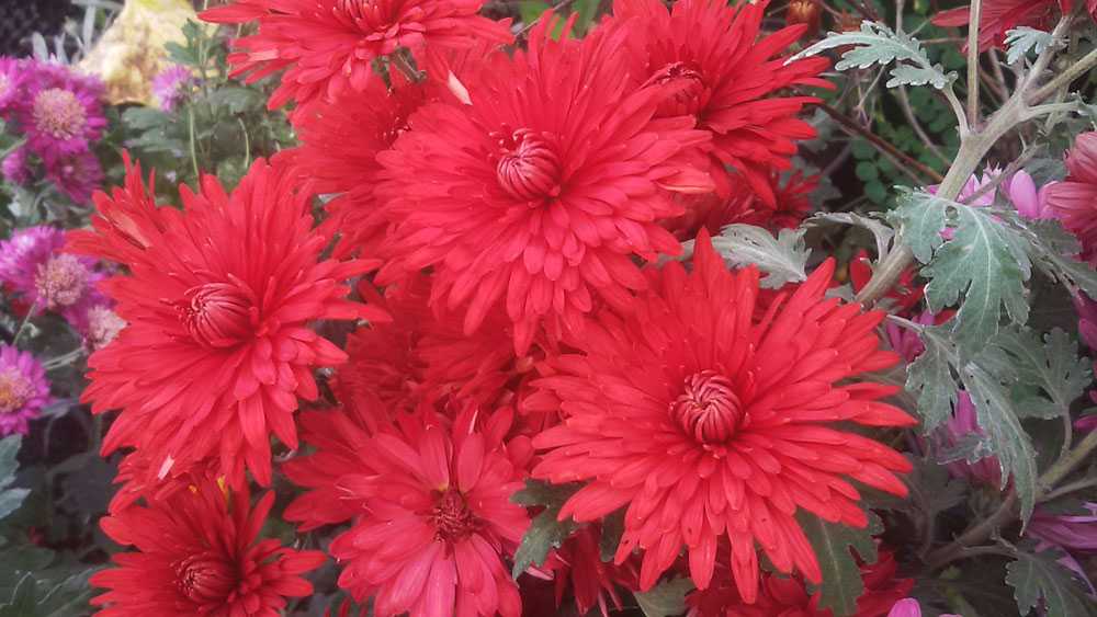 - для жены прекрасно подойдут красные или двухцветные хризантемы;