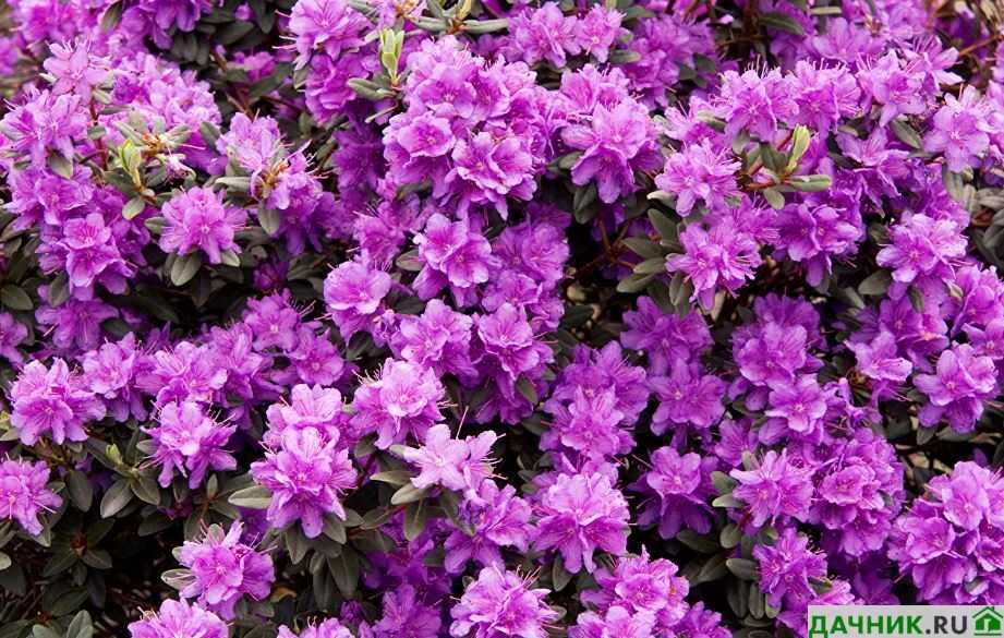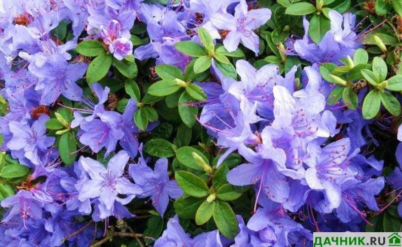 Рододендрон Несмотря на капризный характер рододендрона, он с каждым годом всё больше покоряет сердца наших садоводов. Высокорослый кустарник (до 4 м) усыпан в период цветущей фазы крупными «букетами». Популярен у цветоводов фиолетовый рододендрон «Распутин». На зиму куст требуется обязательно укрывать от мокрого снега, чтобы рано весной рододендрон порадовал своим великолепием.