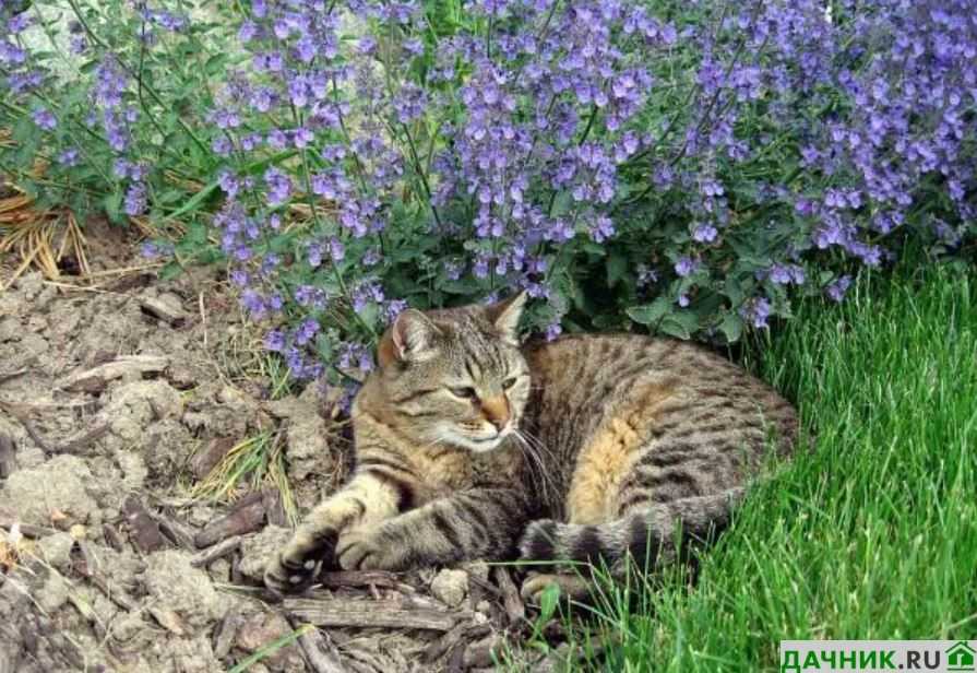 Кошачья мята, она же котовник лимонный многолетнее травянистое растение высотой до 1 м. Очень влаголюбивое растение, предпочитающее солнечные участки. При посадке в тени растение вытягивается в высоту, на солнце растет вширь. Растение морозоустойчивое и хорошо переносит засуху, но кратковременную.