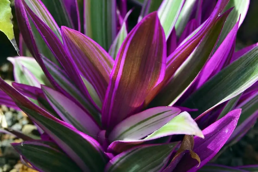 Перечислим названия цветков с фиолетовыми листьями: гинура, традесканция бледная, ирезина, оксалис, гемиграфис, зебрина, кордилина, рео, бегония, пуансеттия.