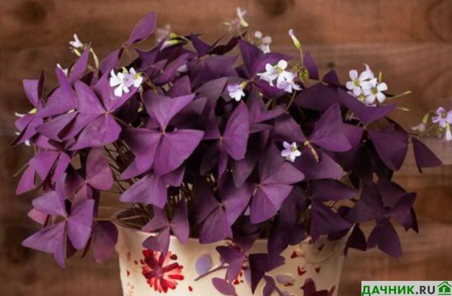Выращивают уникальный цветок с фиолетовыми листочками как в помещении, так и на клумбе. Цветки с желтоватыми, розовыми или белыми лепестками привлекательностью не отличаются, хотя на фоне декоративных листьев смотрятся нежно. Цветение длительное, у кислицы в одно время распускаются сразу по 3-4 бутончика, отцветая, они сменяются новыми. Кислицу часто называют из-за листвы фиолетовым цветком бабочкой. Причина такого названия обоснована: листочки при малейших изменениях в среде обитания (ветерок подул, наступила ночь, пасмурная погода или владелец легонько дотронулся) складываются как крылышки бабочки.