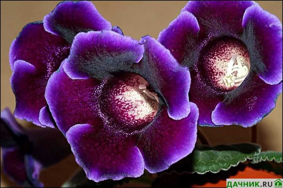 Глоксиния Клубни выпускают цветоносы с крупными пурпурными колокольчиками, контрастирующие на фоне бархатных зелёных листочков. Цветёт глоксиния 50-60 дней.