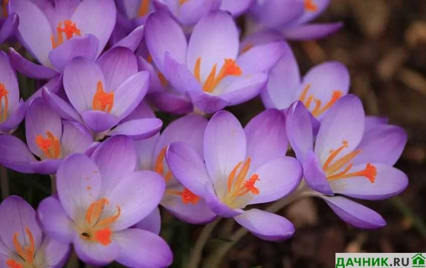 Низкорослые луковичные растения высотой до 10 см. Посадку крокусов производят весной на солнечные места, хотя растут они практически везде, так как период их роста и цветения приходится на время, когда садовые растения только просыпаются и тень от них им особо не мешает. В почву для посадки добавляют песок, перегной известь и золу.