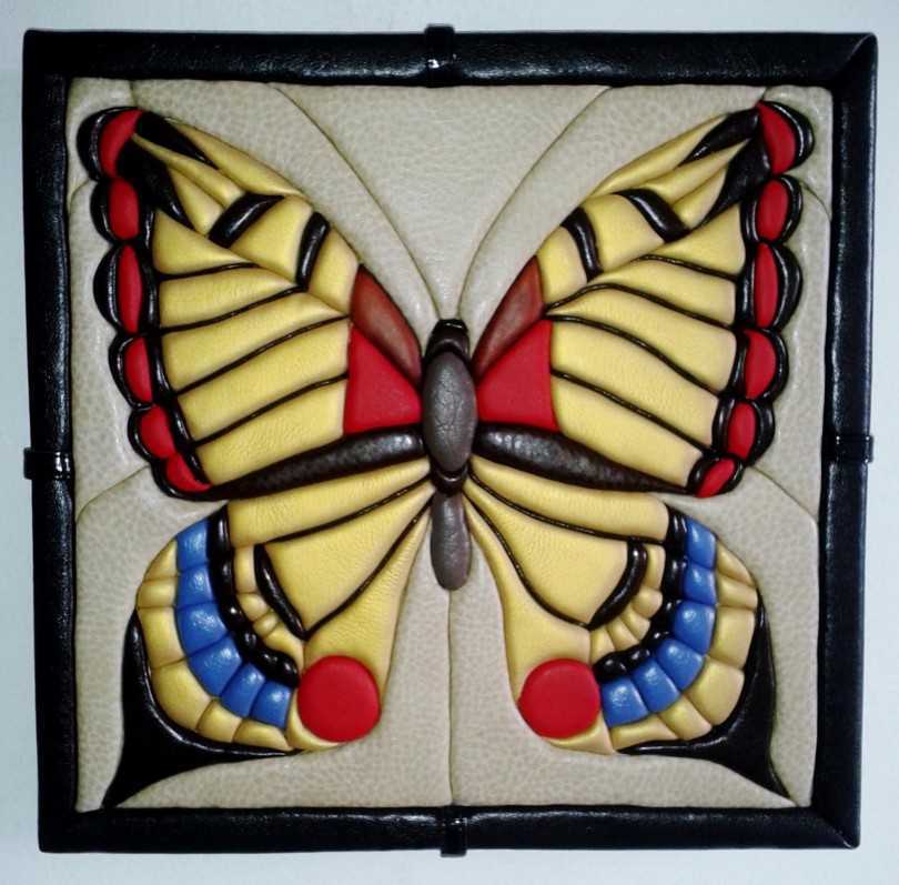 С помощью клея Момент проволоку обделывают кожей, а получившиеся жгуты наклеивают по контурам рисунка. Место, где небо, заклеивают голубым лоскутком и натягивают, чтобы не было складочек. Также его можно просто закрасить.