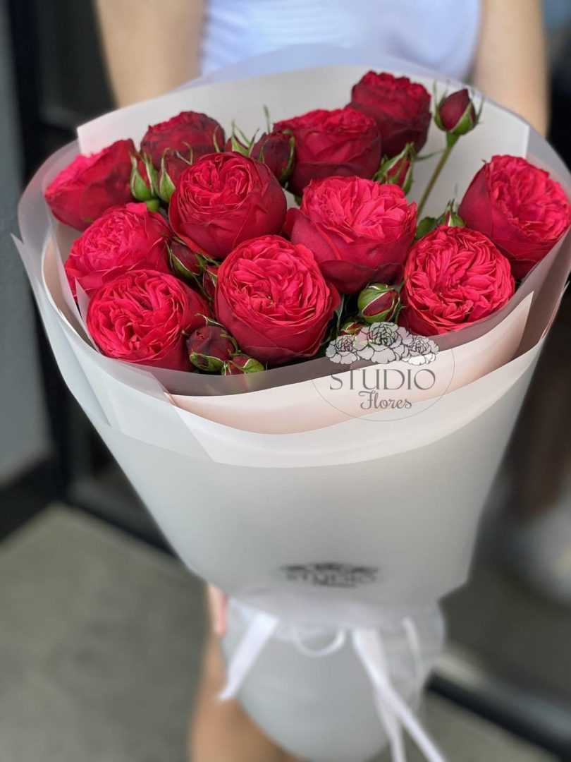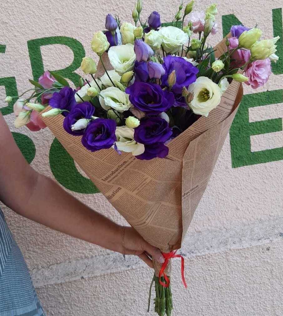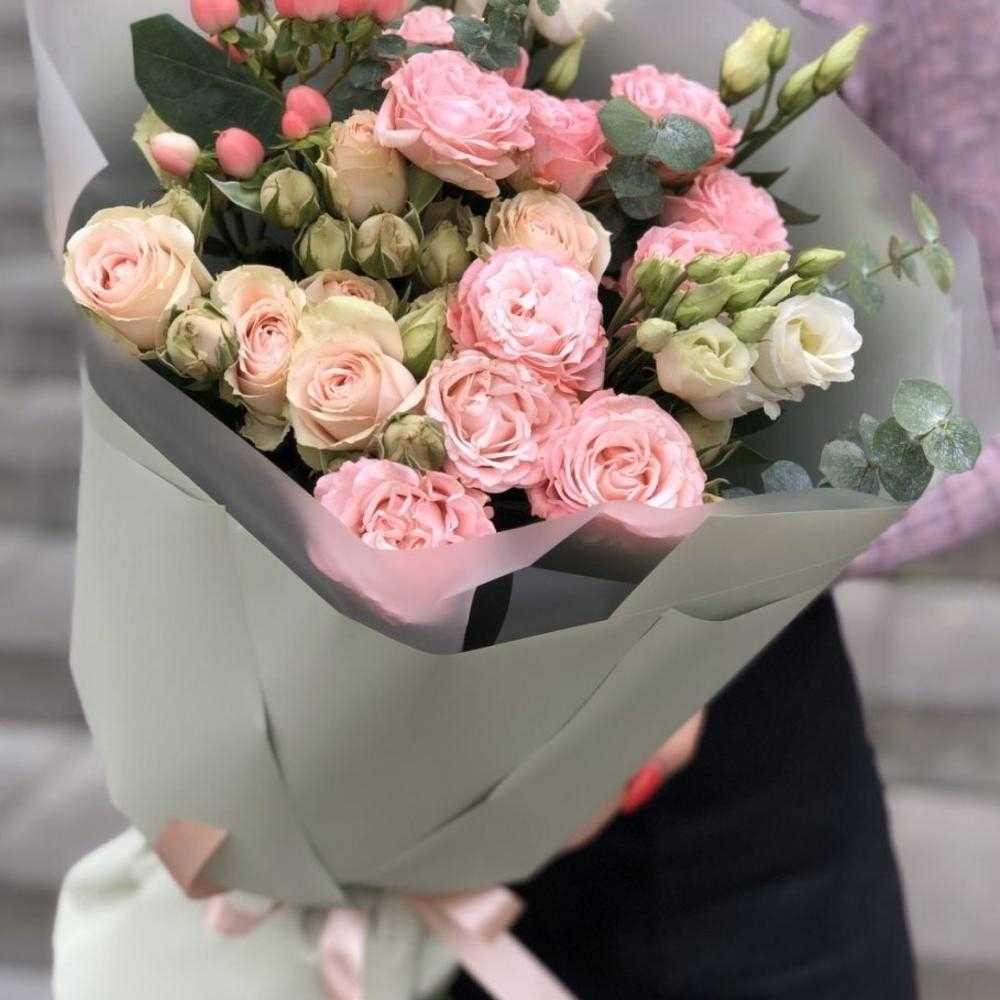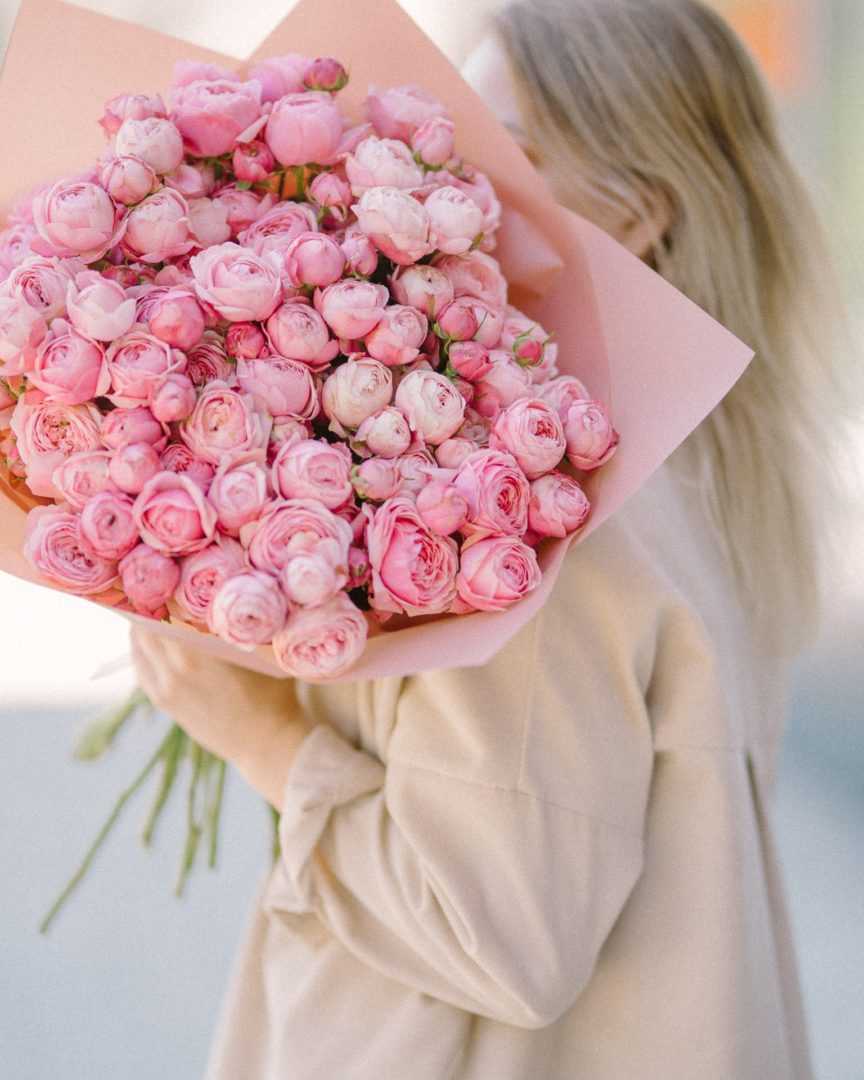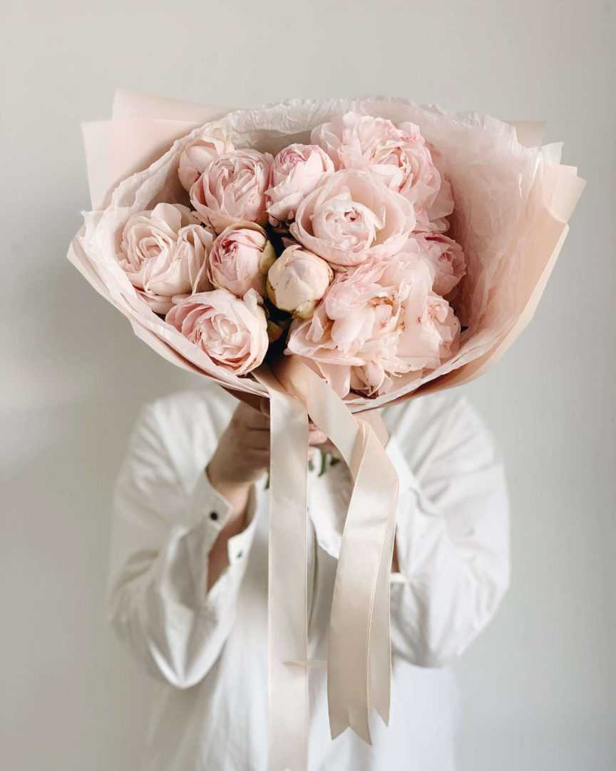 При составлении монобукетов можно использовать практически любые декоративные растения. В моду входят композиции с зеленью, т. е. букеты, состоящие из цветов одного вида и нескольких веток зелени. Для составления монобукетов отлично подходят пионы, хризантемы, георгины, гвоздика и эустома. Отдельно стоит упомянуть букеты роз, которые всегда востребованы и подходят для любого праздника.