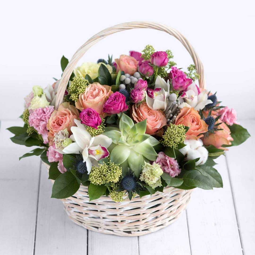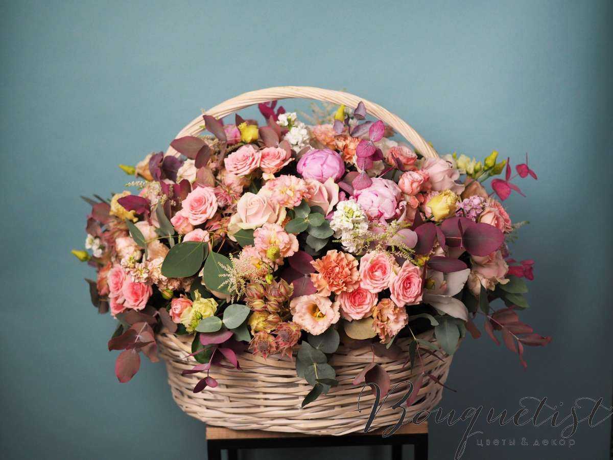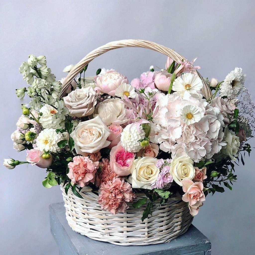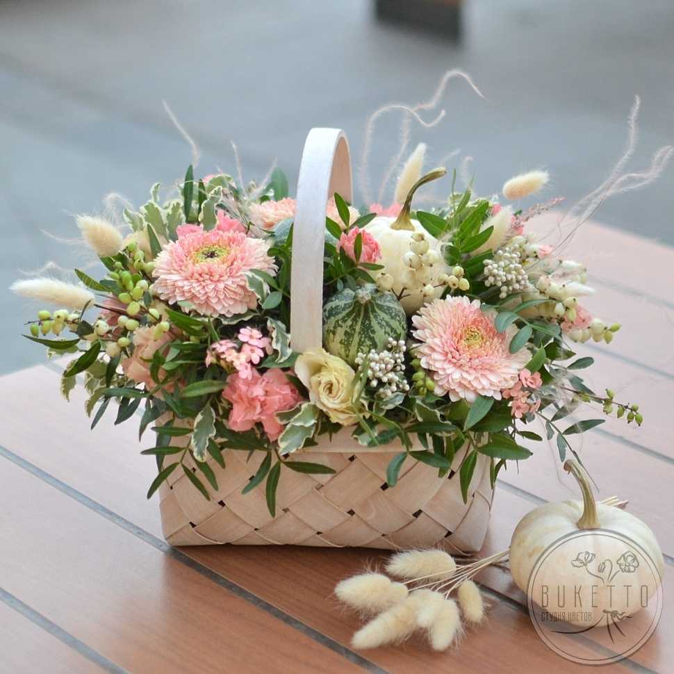 Модные букеты цветов в корзине: фото лучших идей флористики