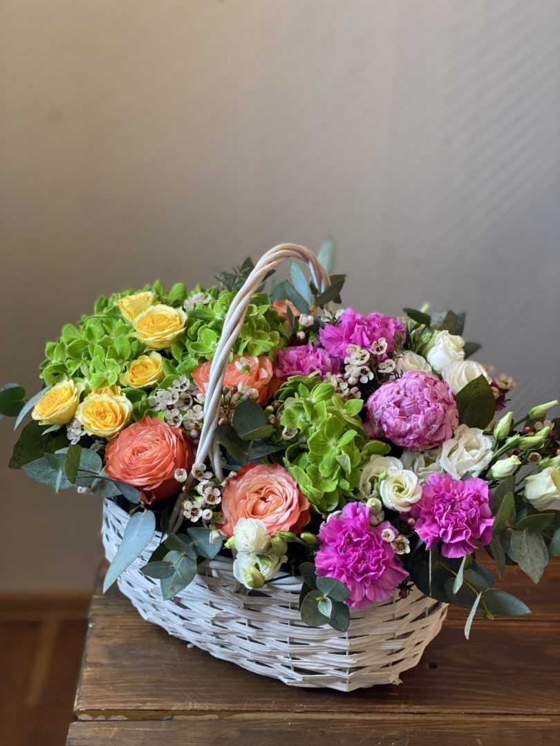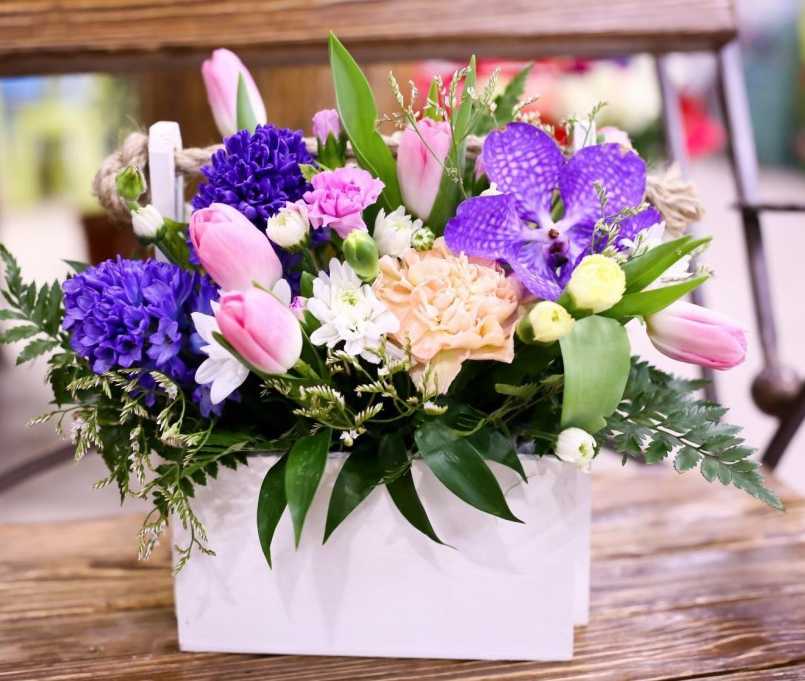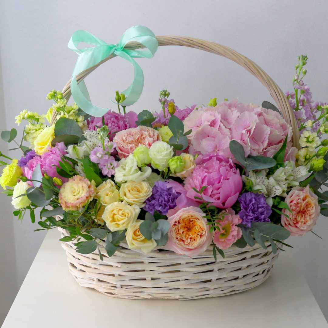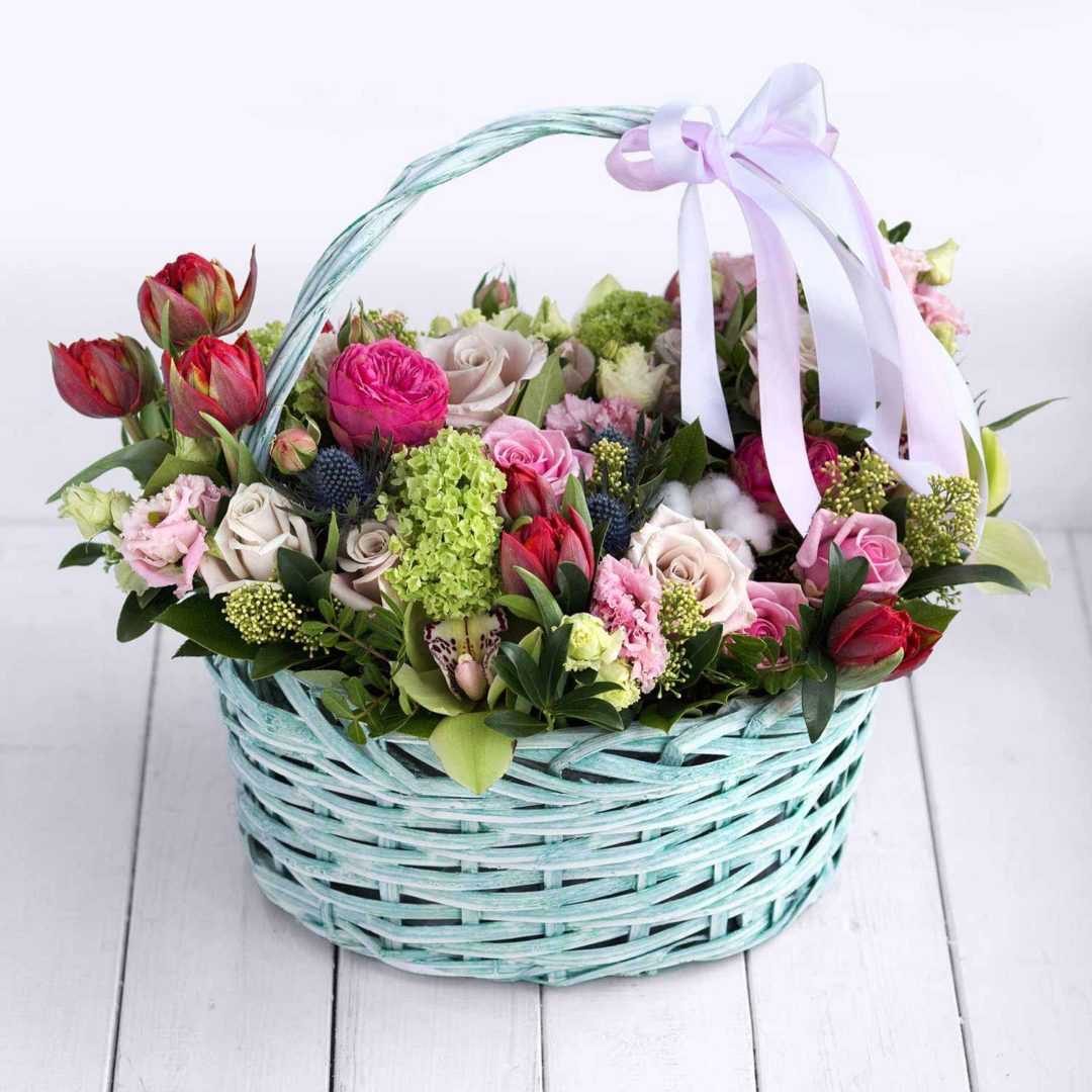 Модные букеты цветов в корзине: фото лучших идей флористики