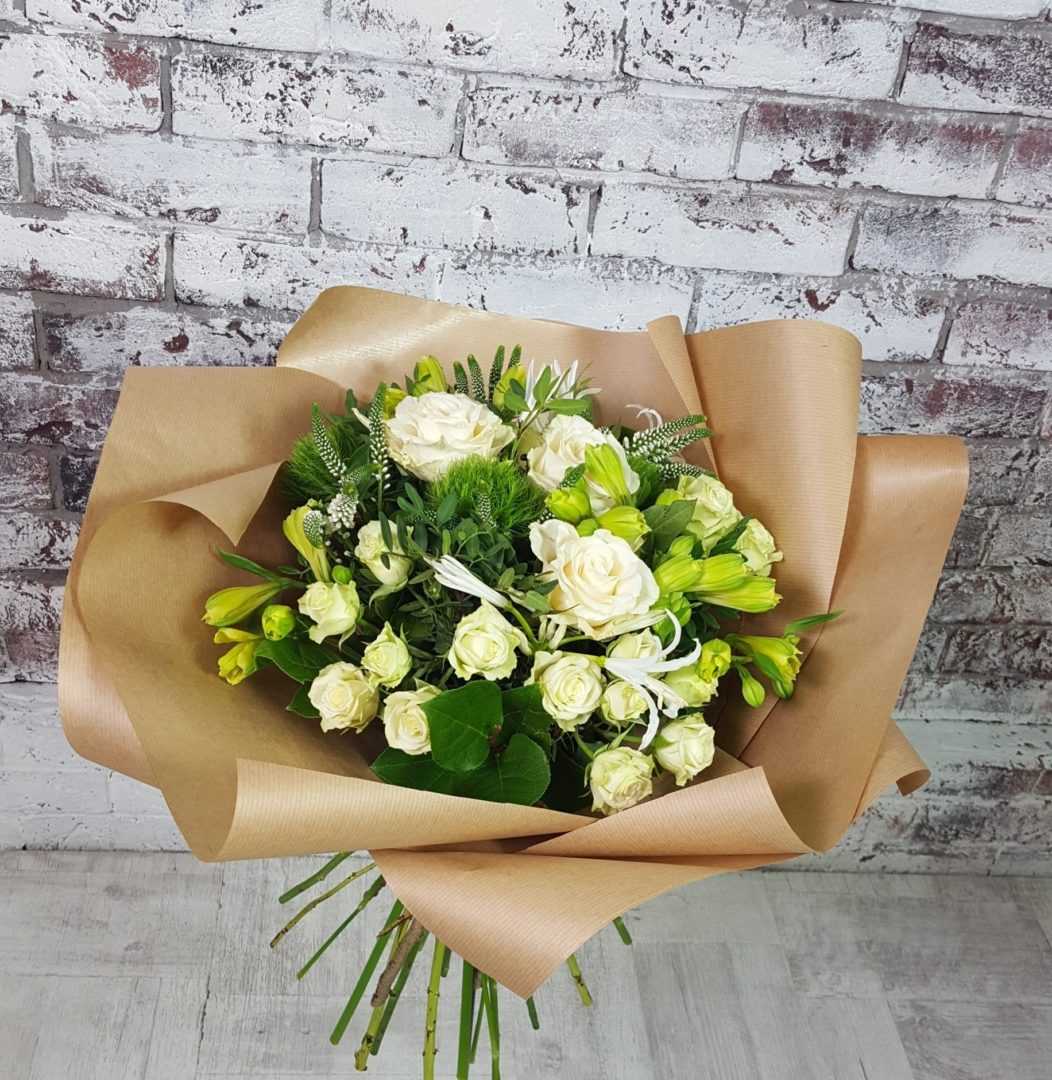 Все большую популярность приобретают букеты, упакованные в крафт-бумагу. Последняя позволяет цветам сохранять свежесть и красоту в течение длительного времени, а также может служить отличным украшением. Бумажная упаковка – лаконичный и стильный вариант. Она способна оригинально дополнять композицию при условии грамотного оформления. Помимо крафтовой бумаги, можно использовать кальку коричневых или светлых оттенков.