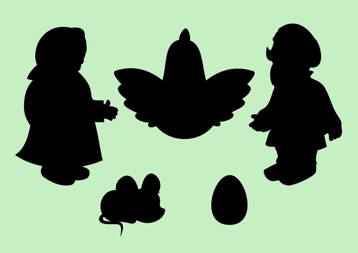 — Куда-то ушли все герои сказки, остались только их тени. Давайте вернем всех на место: вот вам цветные картинки деда, бабы, яйца, курочки и мышки — разложите их на подходящие по форме тени.
