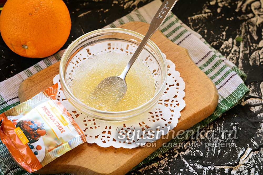 Немного подогреть воду – до температуры тела. Всыпать желатин, перемешать. Оставить его растворяться и набухать (10-20 минут в зависимости от производителя).