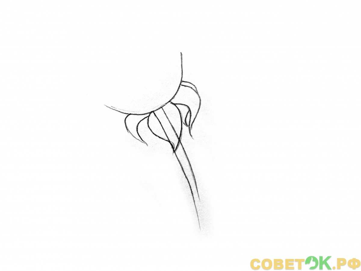 2. Также от контура цветка прорисовываем мелкие листики, которые будут относиться к стеблю.