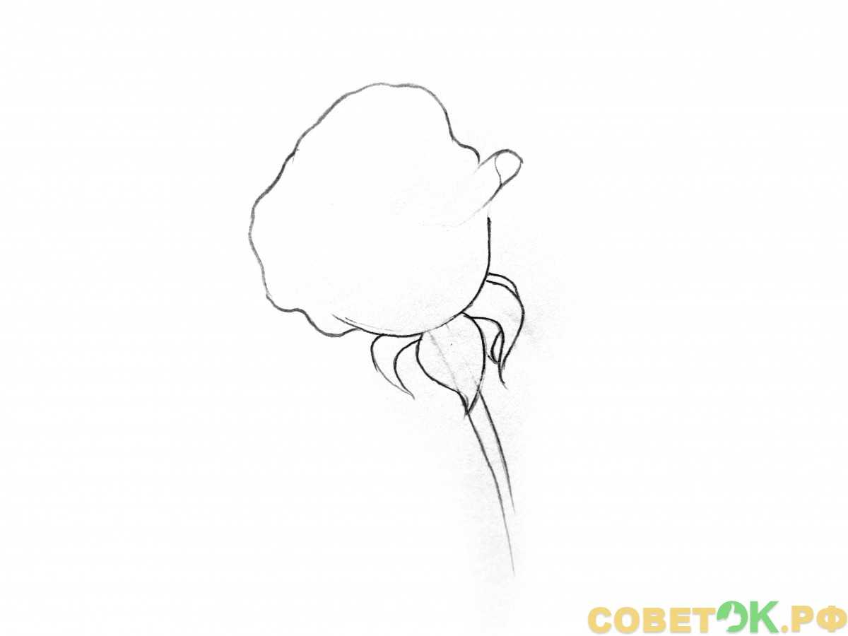 3. Схематично намечаем контур бутона нашей будущей розы, который в дальнейшем можно корректировать.