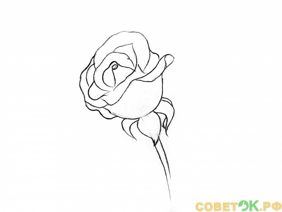 Как только лепестки спереди будут нарисованы, нужно добавить те, которые находятся в глубине бутона. У них нужно рисовать только кончики. Когда наброски будут готовы, ластиком нужно удалить все ненужные линии, которые портят рисунок.