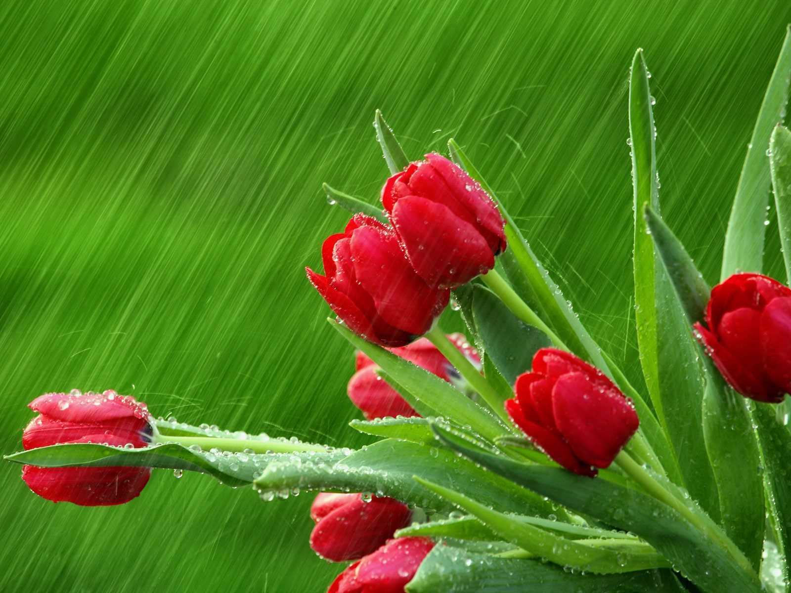 Вот эта картинка с красивыми цветами под дождем идеально подходит для рабочего стола вашего компьютера, слева мы имеем большую зеленую зону, где можно разместить множество иконок с папками, и программами.
